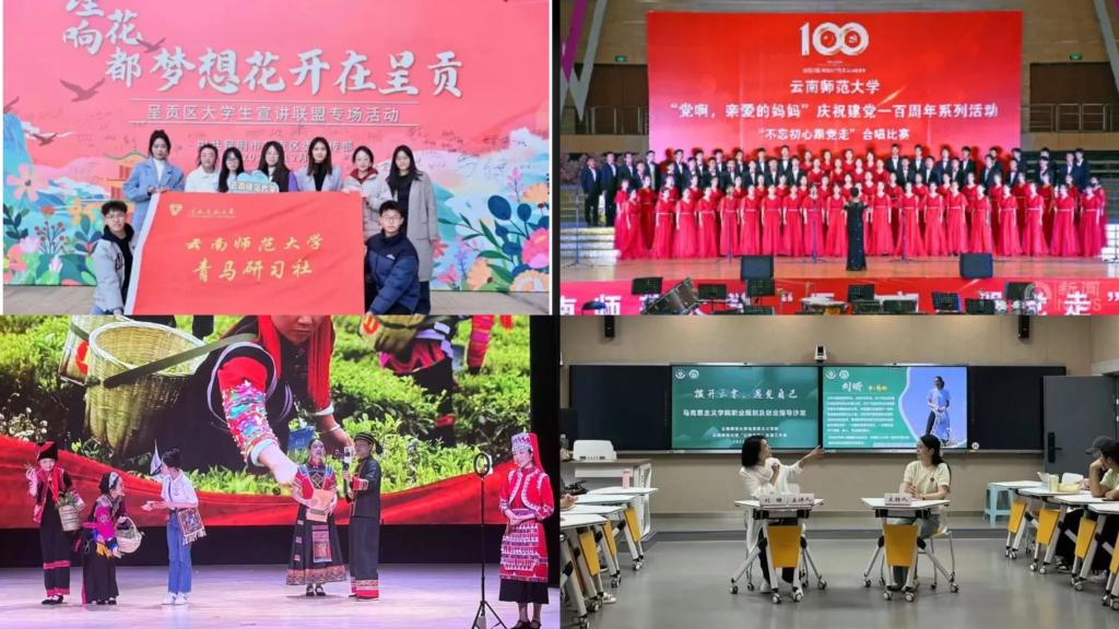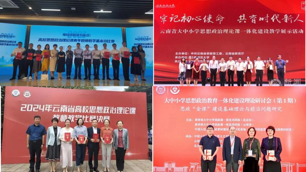 夯实教学根基,思政“金课”建设稳步提升。严格对标教育部要求,完善思政课“金课”建设标准。开足开好“习近平新时代中国特色社会主义思想概论”等核心课程,将铸牢中华民族共同体意识教育全面融入思政课教学。创新整合网络优质资源,推进思政课内涵式发展。着力建强师资队伍,持续选派教师参加国家级、省级培训,邀请清华大学、中国社科院等机构专家参与指导。常态化开展集体备课与教学评估,构建“备课-教学-实践-反思-提升”的闭环体系,促进教学能力持续提升。坚持守正创新,积极探索教学模式革新。组建“形势与政策”课程“一课多师”大团队,邀请文化名家、优秀校友、大国工匠、模范人物等参与,使课内和课外相互支撑、理论和实践相互印证;“四史”课程创新“思政课+艺术作品”的“双师联讲”,以艺术深化理论感悟。完善“以赛促教”机制,打造“一站式”磨课流程,组建名师指导专家库。积极构建“大思政课”格局,拓展育人场域。与西南联大博物馆等10余家单位签约建立实践基地,实现实践育人全覆盖。思政课改革示范效应显著。获省级教学成果奖一等奖1项、校级奖4项;“原理”“德法”课建成校级线上线下混合式、社会实践一流课程,4个教学案例获评省级优秀教案,多门课程启动知识图谱建设,以数字化提升教学互动与实效。2个实践基地入选教育部“大思政课”实践基地,2个项目入选高校思想政治工作质量提升综合改革与精品建设项目。教师获全国高校思政课教学展示一等奖1项、二等奖1项。积极探索大中小学思政课一体化理论与实践的创新发展,获批教育部“大中小学思政课一体化共同体建设”云南牵头单位。