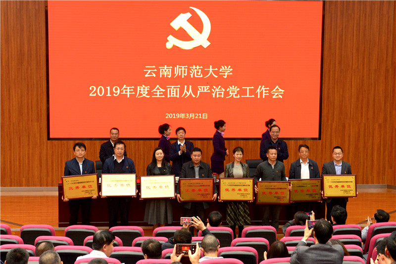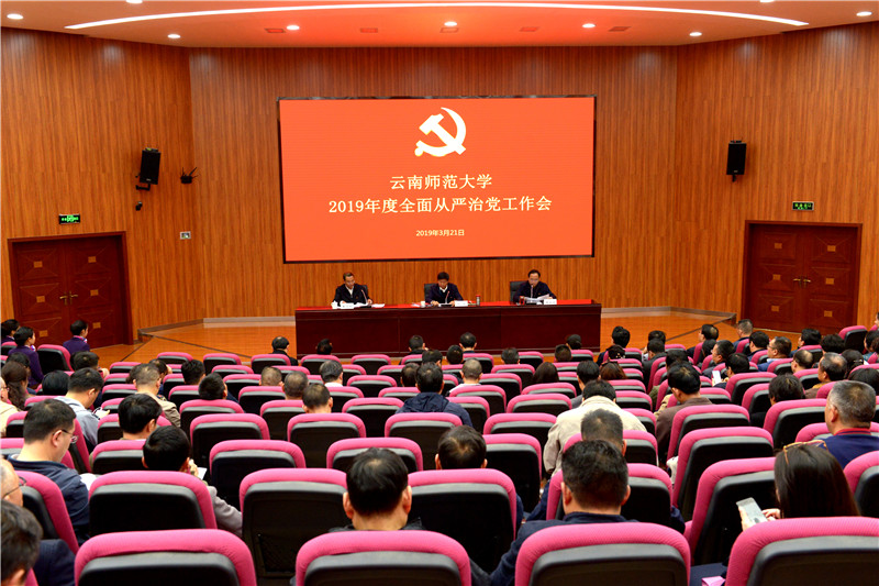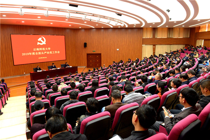 为总结2018年度学校全面从严治党工作,安排部署2019年全面从严治党重点工作任务,进一步推动学校全面从严治党向纵深发展,营造更加风清气正的政治生态和育人环境,3月21日下午,德赢官网Vwin2019年度全面从严治党工作会在呈贡主校区汇学2幢101报告厅召开。校党政领导班子成员,校纪委委员,含非领导职务的全校副处级及以上干部,各单位党委、党总支、直属党支部纪检委员,机关各部门、后勤处、资产公司全体科级干部,共400余人参加了会议。会议由校党委副书记、校长蒋永文同志主持。