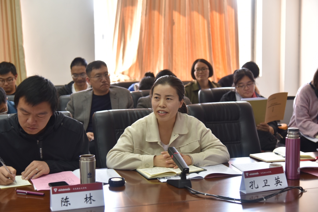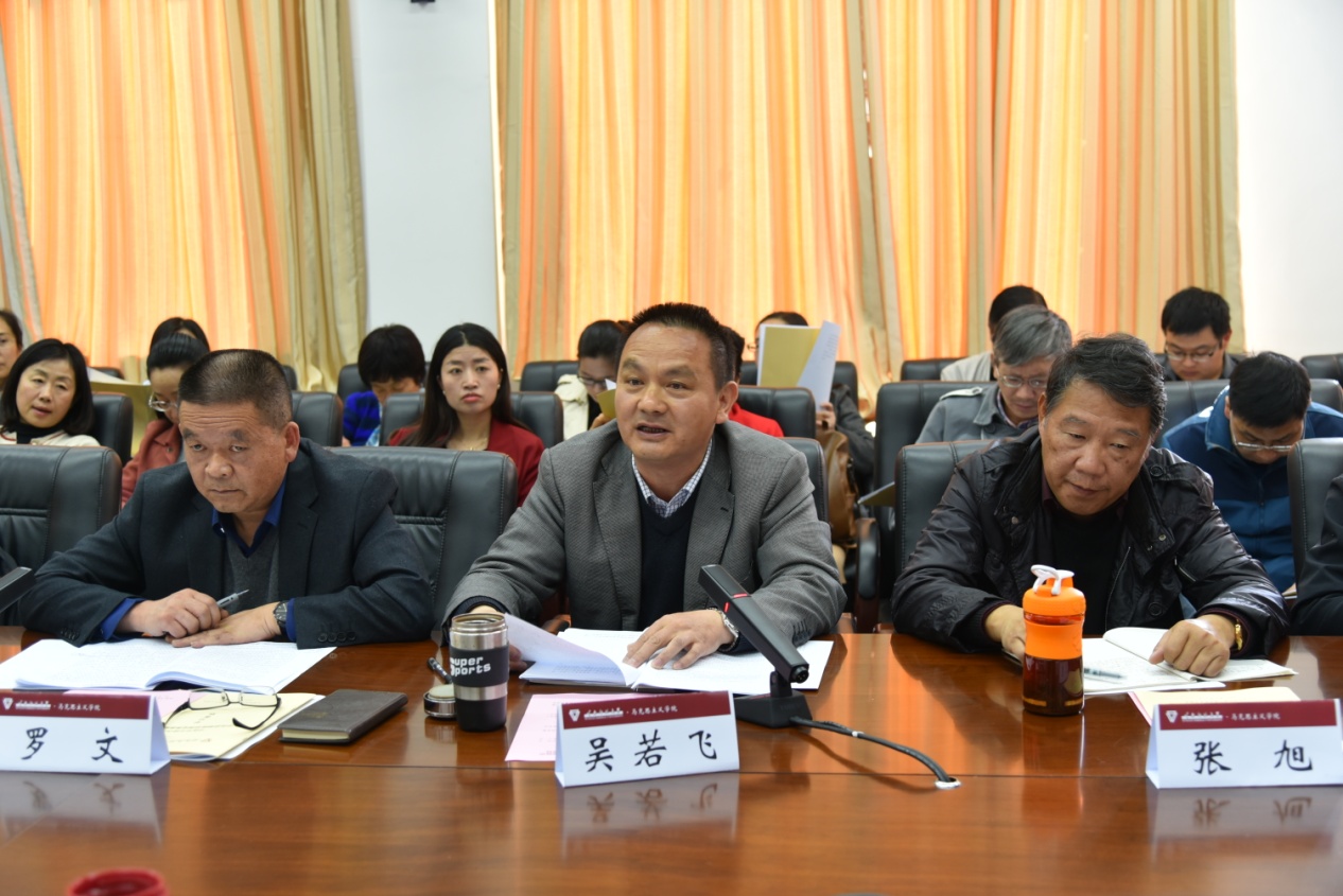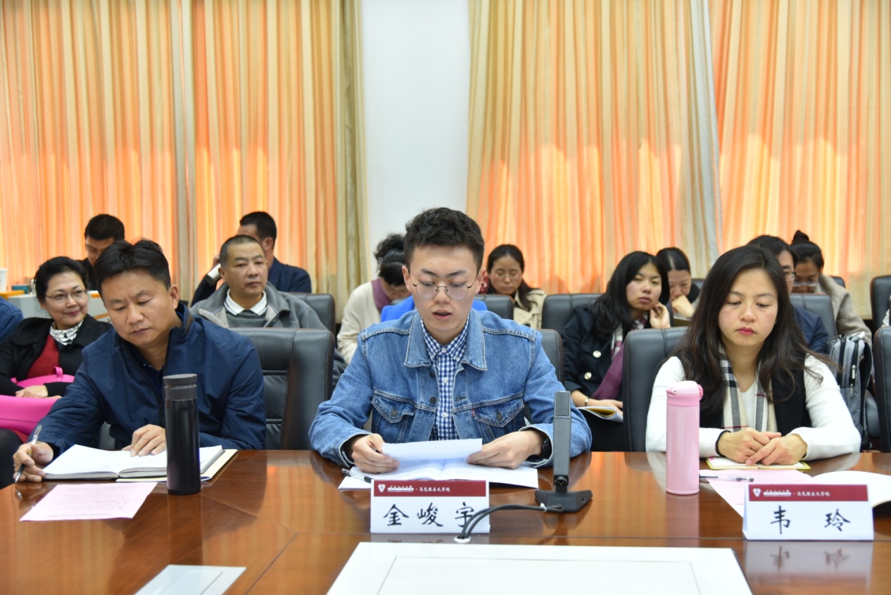 随后,马克思主义学院党总支书记吴若飞、院长罗文先后围绕对习近平总书记重要讲话精神的感悟和学院的建设发展思考作了交流发言。思想政治理论课教师代表胥春雷、陈明辉、陈林、韦玲、孔卫英,马克思主义基本原理硕士研究生金峻宇,学校思想政治理论课教学督导张旭先后分享了对讲话精神的理解和感想。发言师生一致表示,习近平总书记的讲话高屋建瓴、鼓舞人心、立意深远、内涵丰富,对于进一步强化立德树人,解决好培养什么人、怎样培养人、为谁培养人这个根本问题,培养德智体美劳全面发展的社会主义建设者和接班人指明了方向,是新时代深化高校思想政治理论课改革创新的行动指南。