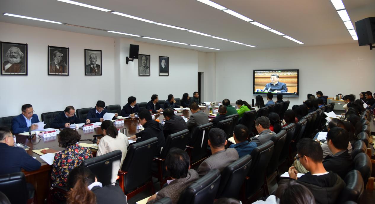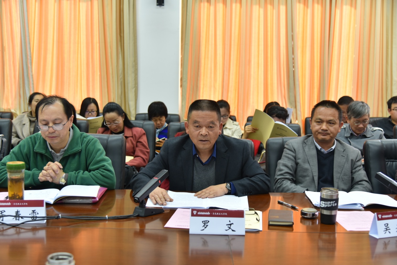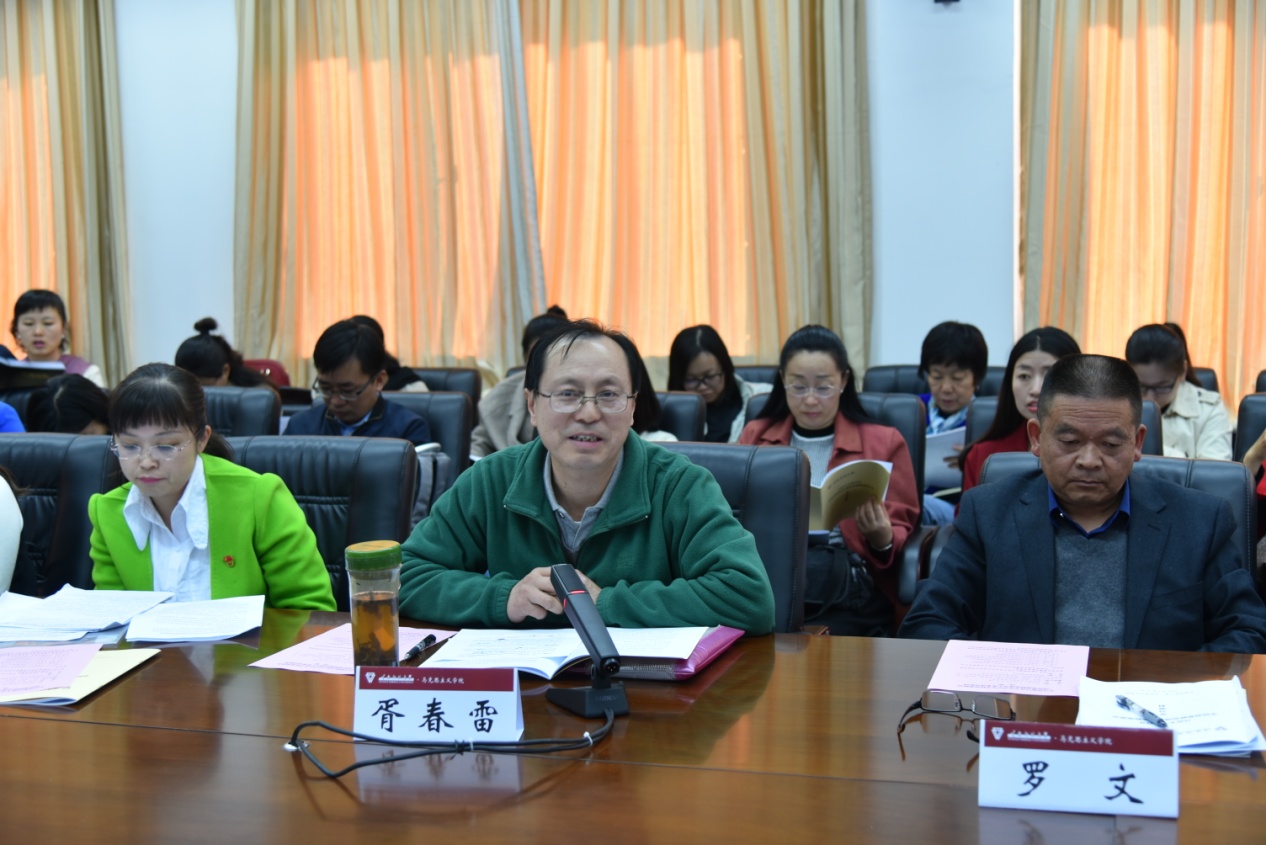 随后,马克思主义学院党总支书记吴若飞、院长罗文先后围绕对习近平总书记重要讲话精神的感悟和学院的建设发展思考作了交流发言。思想政治理论课教师代表胥春雷、陈明辉、陈林、韦玲、孔卫英,马克思主义基本原理硕士研究生金峻宇,学校思想政治理论课教学督导张旭先后分享了对讲话精神的理解和感想。发言师生一致表示,习近平总书记的讲话高屋建瓴、鼓舞人心、立意深远、内涵丰富,对于进一步强化立德树人,解决好培养什么人、怎样培养人、为谁培养人这个根本问题,培养德智体美劳全面发展的社会主义建设者和接班人指明了方向,是新时代深化高校思想政治理论课改革创新的行动指南。