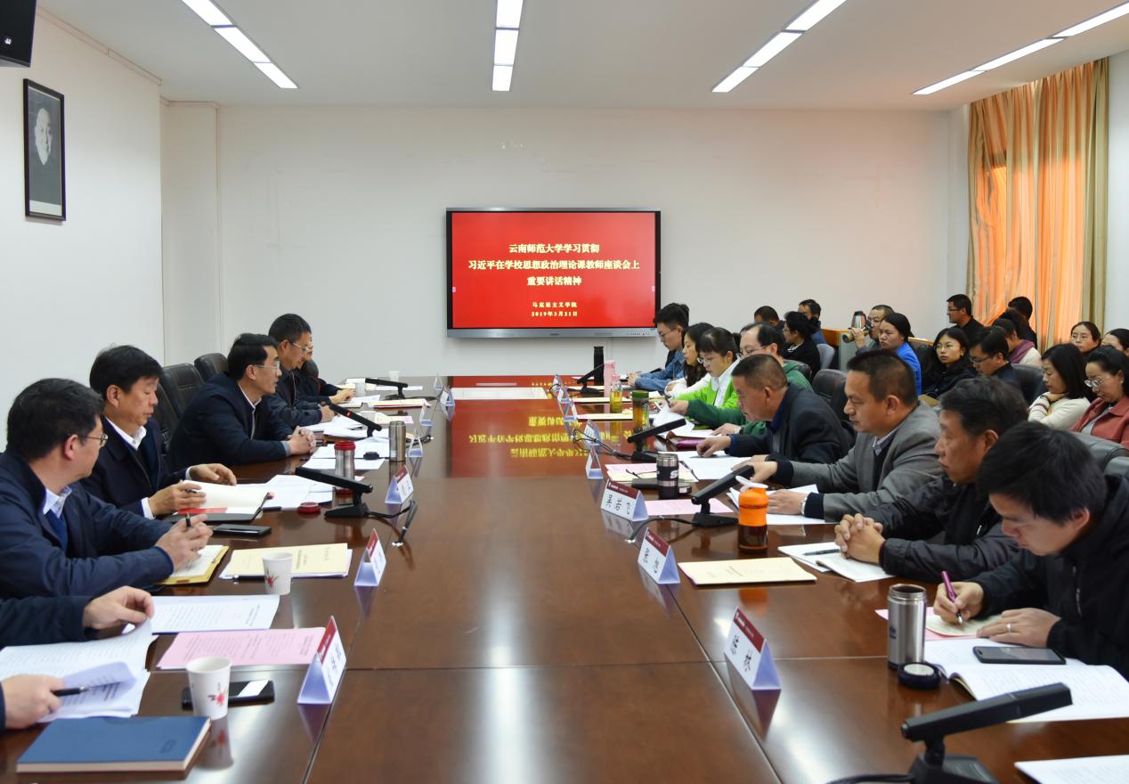 3月21日上午,德赢官网在马克思主义学院召开座谈会,学习贯彻习近平总书记在学校思想政治理论课教师座谈会上的重要讲话精神。校党委书记饶卫、党委副书记张玮,党办、组织部、宣传部、学生工作部、校团委、教务处、研究生部主要负责人,马克思主义学院领导班子、全体教师和学生代表参会,张玮副书记主持座谈会。