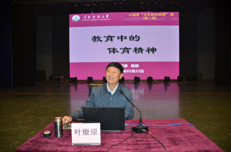 2019年3月22日上午,云南省“万名校长培训计划”第二期名家讲座第6讲在昆明理工大学红土会堂举行,德赢官网Vwin原党委书记叶燎原教授以《教育中的体育精神》主题,为第二期参训的1000名学员授课。讲座由德赢官网Vwin数学学院党委书记、万名校长培训计划项目办林卫东主持。