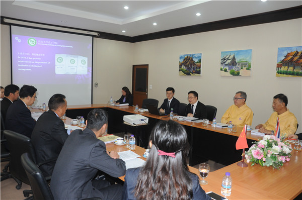 2019年3月25日,清迈大学孔子学院(以下简称“清迈孔院”)第十一届理事会在泰国清迈大学顺利举行。正式会议前,清迈大学校长尼威教授、副校长鹏拉、珊潘副教授会见了德赢官网Vwin代表团,对代表团一行表示热烈的欢迎并对本次理事会寄予美好的祝愿。