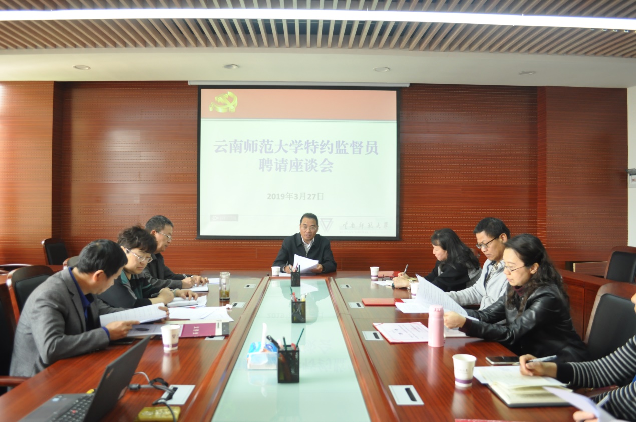 3月27日上午,校纪委在呈贡校区行政楼435室召开德赢官网Vwin首批特约监督员聘请座谈会。校纪委书记王志刚向与会特约监督员颁发聘书,并与大家座谈。受聘的首批特约监督员,以及校党委组织部部长蔡金红、校纪委副书记兼审计处处长任祥、校党委统战部副处级统战员刘彦参加会议。会议由校纪委副书记包云燕主持。