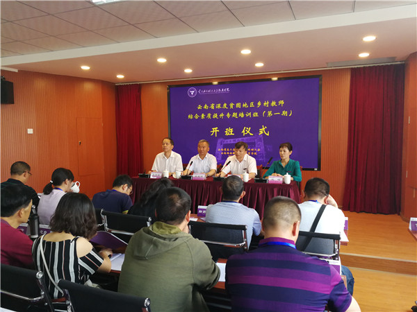 为深入贯彻落实精准扶贫基本方略,创新教育扶智扶贫模式,由云南省总工会、云南省教育厅主办,云南省教育卫生科研工会、云南西南联大干部教育学院合作组织实施的“云南省深度贫困地区乡村教师综合素质提升专题培训班(第一期)”,于5月20日上午在学校一二一西南联大校区明达楼409报告厅举行开班仪式,省总工会党组成员、副主席尚建明,德赢官网Vwin党委副书记李宏,云南省教育卫生科研工会经审会主任王明雷、宣教部部长段国庆,来自怒江州、迪庆州、昭通市的100名学员参加了开班仪式。仪式由云南西南联大干部教育学院专职副院长沈旸主持。