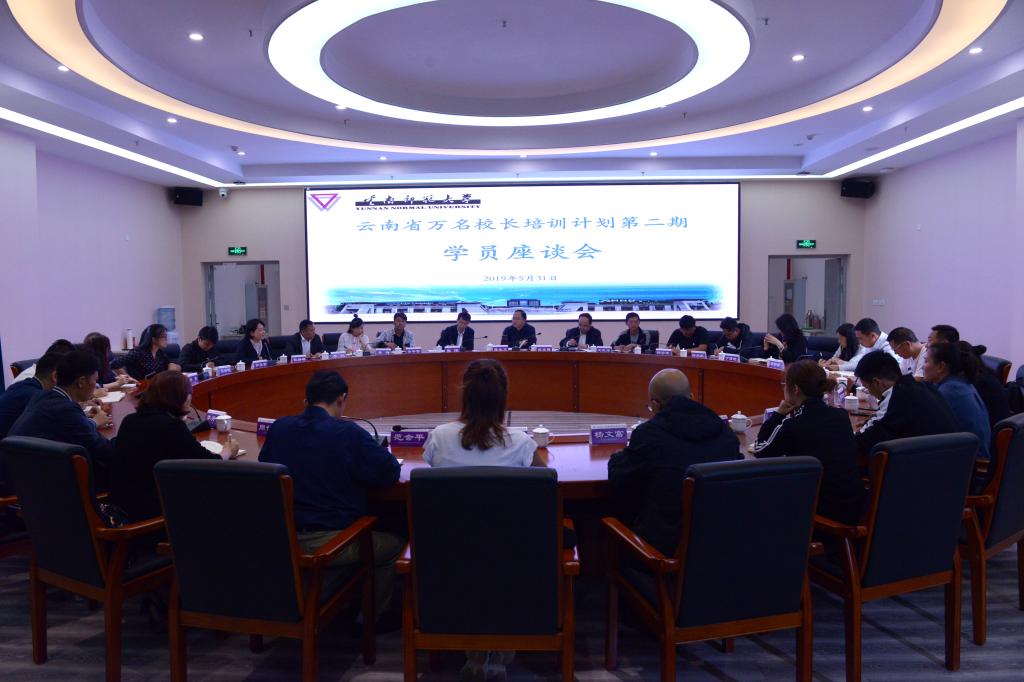 5月31日下午,蒋永文校长在德赢官网国家教师教育教学实验示范中心二区201会议室主持召开了“万名校长培训计划”第二期参训学员代表座谈会。校党委副书记张玮,副校长武友德,党委办公室、校长办公室、党委组织部、党委宣传部、教务处、信息管理处、保卫处、后勤保障处、本科教学质量监控与评估中心、教育科学与管理学院、数学学院、物理与电子信息学院、成人继续教育学院、云南西南联大干部教育学院、万名校长培训计划项目办公室等单位负责人,20名学员代表、7名学委会代表参加了会议。