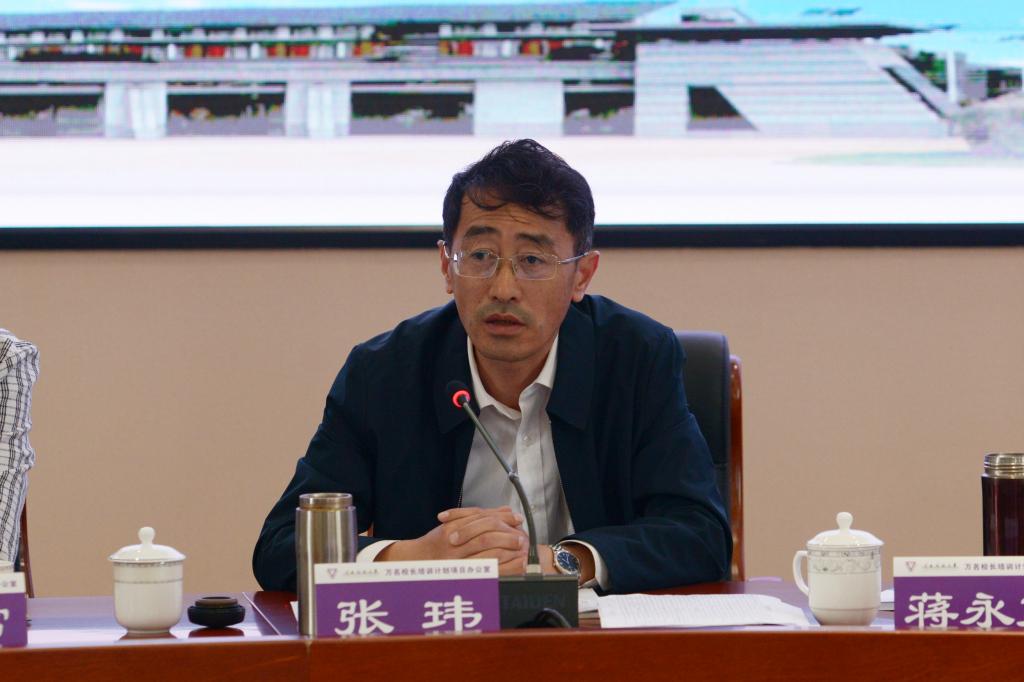 张玮副书记表示“万名校长培训计划”是省委省政府、省教育厅认真贯彻落实全国教育大会精神、加强云南省教师队伍改革建设的重大战略举措,学校承担这项光荣而艰巨的任务是积极服务地方经济社会发展、服务云南省基础教育发展的现实体现。项目的实施既是为全省中小学(幼儿园)校(园)长成长搭台子、架梯子、压担子,也是学校为校(园)长的专业发展、思想成长、素质提升提供支持和服务。张副书记希望全体学员珍惜机会,刻苦钻研,主动、自觉的安排好学习时间,让这样一次集中学习成为思想、知识、能力积淀的机会,为将来的成长奠定良好的基础。