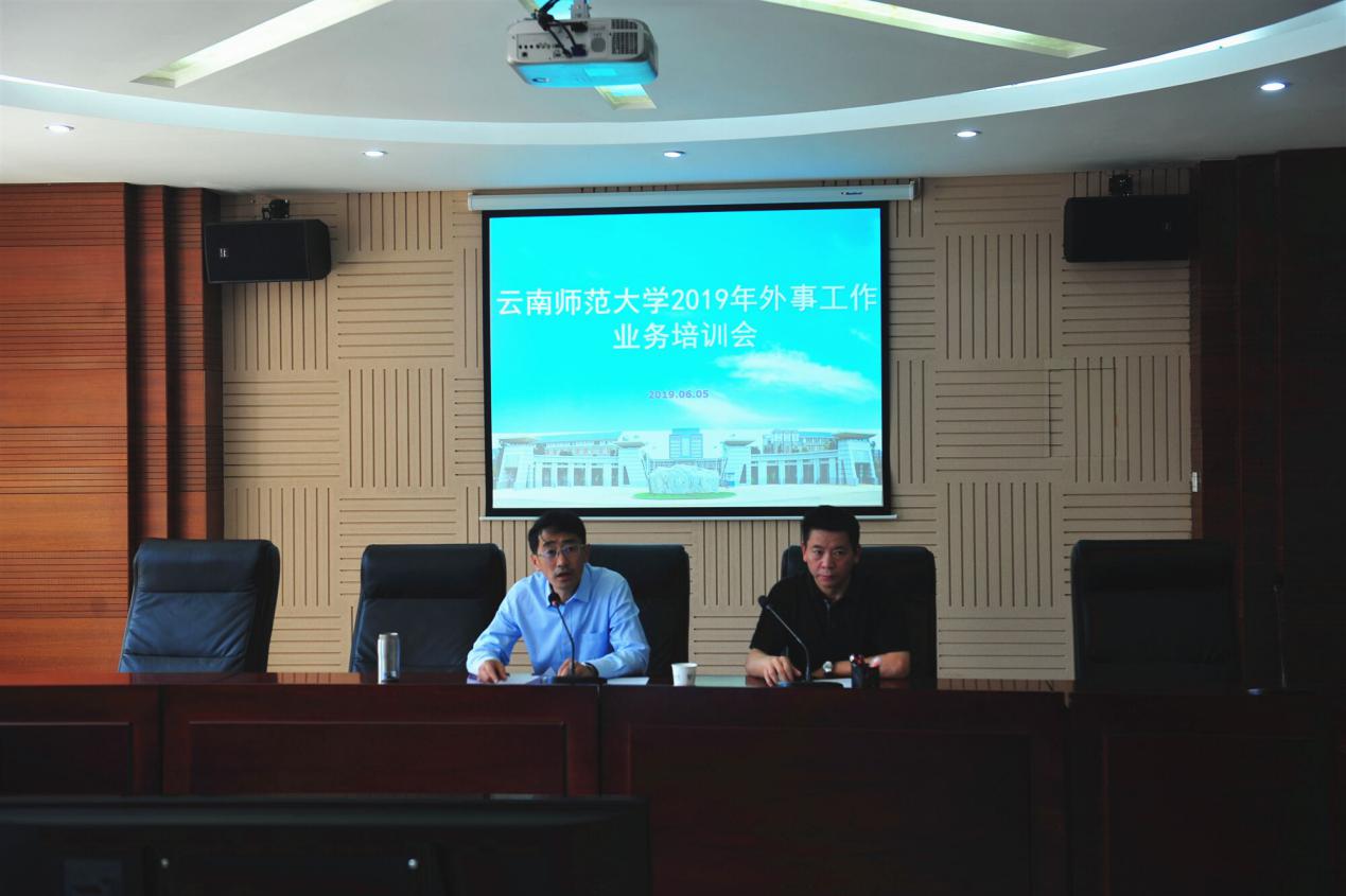 6月5日下午,德赢官网在呈贡校区340会议室召开了2019年外事工作业务培训会。会议的主要任务是对学校各个部门进行外事工作业务培训,提高认识、了解政策、规范管理,使各学院和研究所的外事工作更好地服务于学校“双一流”建设,提升学校整体教育国际化水平。学校党委副书记张玮、副校长刘宗立、外事工作领导小组成员单位主要负责人、民族教育信息化教育部重点实验室、汉藏语研究院、西边中心、基础教育集团办公室、各学院(含独立学院)分管外事工作领导及外事秘书、国际处全体人员参加了此次培训会。培训会分为两个阶段,由刘宗立副校长主持。