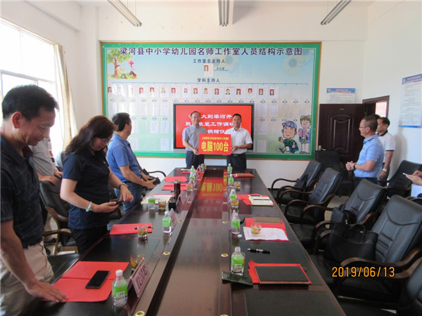 图书捐赠仪式结束后,蒋校长一行前往梁河县教育体育局出席电脑捐赠仪式。德赢官网Vwin向梁河县8所中小学校捐赠100台电脑,用于改善学校办学条件,助力梁河教育扶贫工作。梁河县人民政府副县长景智富,梁河县教育体育局主要领导及相关股室人员共20余人参加捐赠仪式。蒋校长总结回顾了云师大开展“挂包帮、转走访”对口帮扶梁河以来所开展的工作。蒋校长说:“扶贫先扶智,治穷先治愚”, 教育扶贫是脱贫攻坚的精神推动力和智力保障。扶贫是一个长期的过程,德赢官网Vwin能够在教育扶贫中发挥作用,同时教育扶贫也是我们的一种责任。今后云师大将义不容辞地下大力气持续帮扶,助推梁河脱贫攻坚教育精准扶贫工作。