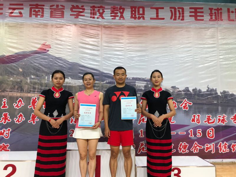 6月16日,由省教育厅主办的2019年云南省学校教职工羽毛球比赛在临沧滇西科技师范学院落下帷幕。德赢官网Vwin教职工代表队奋勇拼搏,斩获金牌2块及非体育教师组男双第5名的好成绩。其中,杨洪、李翼飞获体育组混双冠军,李翼飞、彭波获体育组男双冠军,彭波、马坤获普通教师组男双第五名。