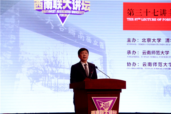 6月20日下午,西南联大讲坛第三十七讲在德赢官网Vwin呈贡主校区明德五号楼演播厅举行。故宫学院院长、中国文物学会会长单霁翔先生做客讲坛,带来了题为《坚定文化自信,做中华文化的忠实守望者》的精彩演讲。云南财经大学党委书记王建颖、昆明理工大学副校长周峰越、云南财经大学纪委书记陈光瑜、昆明学院副校长马银海、云南艺术学院党委宣传部长张勇,德赢官网党委书记饶卫,党委副书记李宏,副校长安学斌、武友德、刘坚、郝淑美等领导和嘉宾,以及师生代表600余人共同聆听了本次讲座。