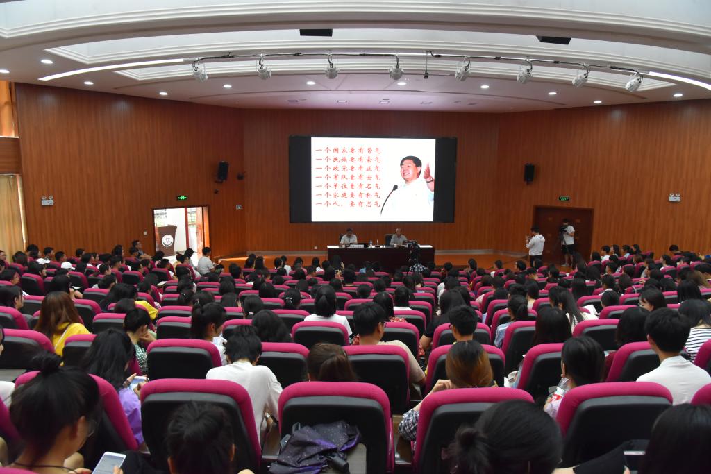 蔡朝东老师诙谐幽默、慷慨激昂、铿锵有力、充满正能量的演讲,深深感染了在场的每位师生。报告引经据典、内容丰富、震撼人心、引人深思,富有极强的感染力,是一场鲜活的爱国主义教育,是一次关于理想、信念、责任的生动解说。