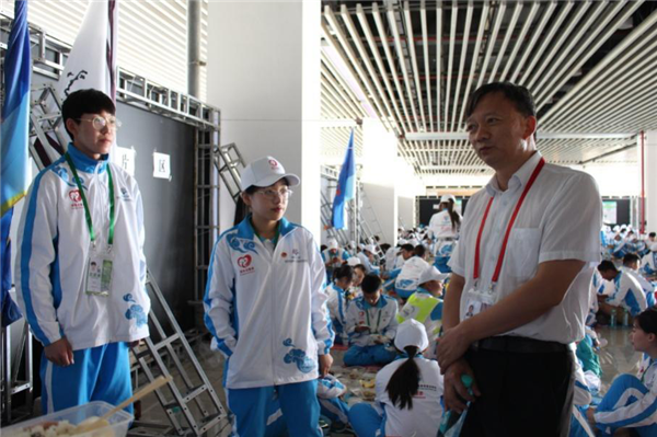 在志愿者休息区,李宏副书记向志愿者们询问上岗情况,叮嘱志愿者们注意安全,合理安排休息时间和学习时间,做到志愿服务与学习生活两者兼顾,并鼓励同学们在大学期间积极参加志愿服务活动,丰富大学生活,提升自己的社会价值,展示师大莘莘学子的蓬勃力量。骨干志愿者李敏、罗寿江表示参加此次活动非常有意义,在工作中一定发扬“奉献、友爱、互助、进步”的志愿者精神和秉承“刚毅坚卓”的校训精神,服务好商洽会,积极实践商洽会志愿者“青春聚力,精彩商洽”的誓言。