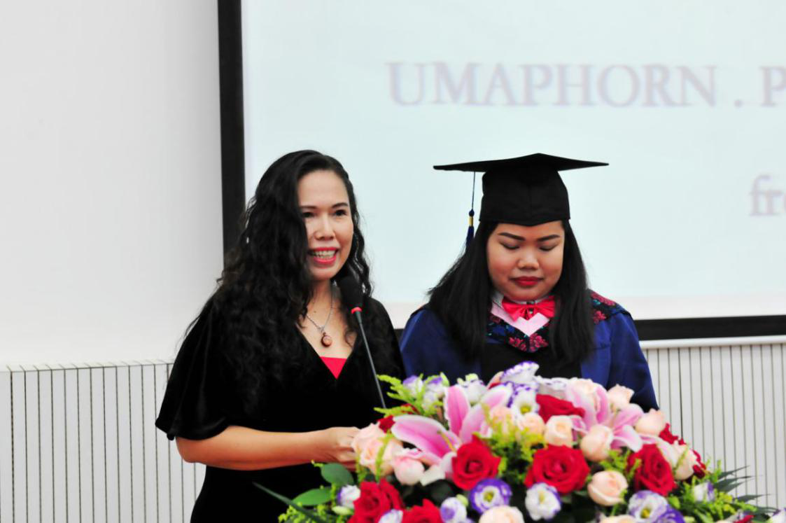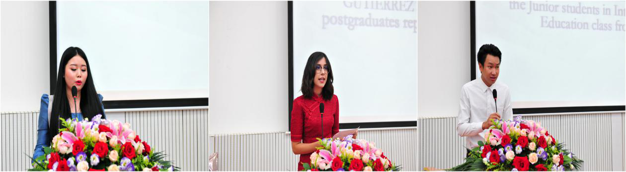 来自老挝的本科毕业生代表杨思丽和来自西班牙的研究毕业生代表爱莲同学分别发言。她们说到,“在这几年的学习生活中,我们学会了成长,学会了思考,学会了合作,学会了信赖,我们每个人都有太多的回忆。云南师大记录着我们的青春与过往,也见证着我们深厚的情谊。让我们牢记“刚毅坚卓”的校训,努力开创更加美好的未来。”