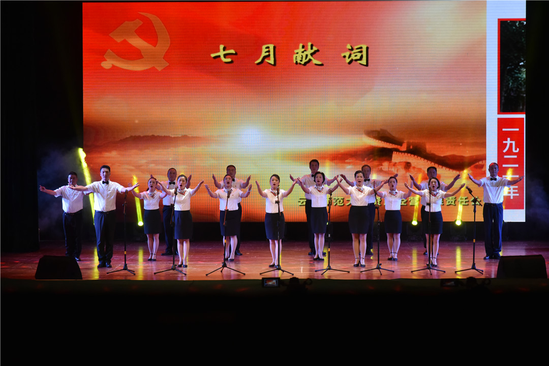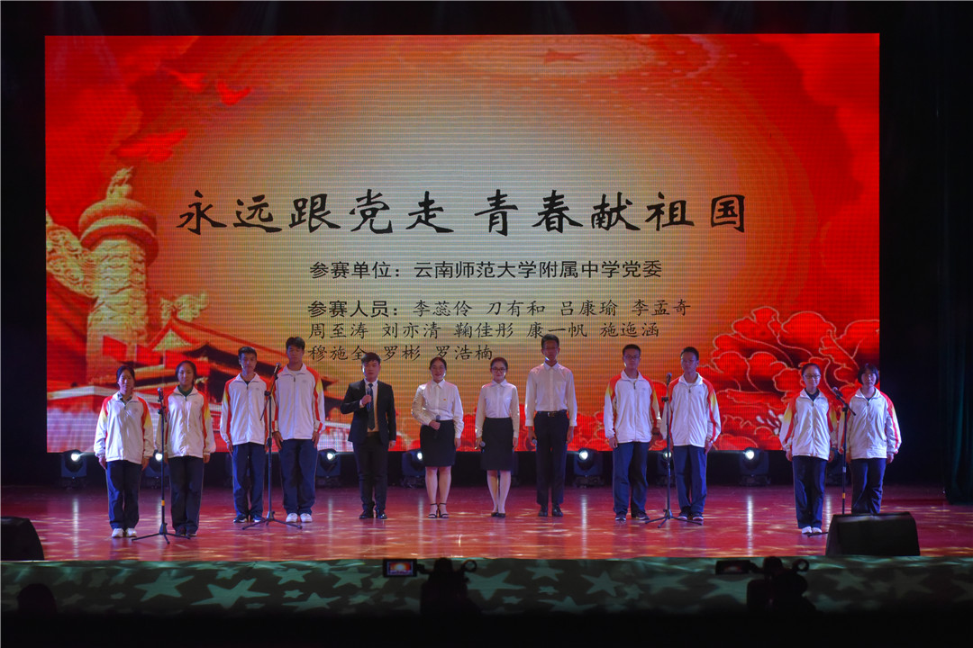 经过前期初赛、预赛的层层遴选,全校共有12支参赛队从39家单位中脱颖而出进入朗诵比赛决赛。各参赛队以饱满的热情,为大家带来了一场精彩的视听盛宴。云南省“万名校长培训计划项目”第二期学员们带来的《颂歌献给党》,满怀激情与敬意,歌颂我们伟大的党、伟大的人民,歌颂美好未来;基础教育集团党总支带来的《我的梦,中国梦》朗诵铿锵有力,意气风发;机关党委作品《不忘初心,薪火永续》诉说了扎根云岭大地,在红土高原上奋力前行的初心与使命;“今天我们献给您的,不是歌曲和花束,是我们永远不会改变的忠心!”资产经营有限公司党总支朗诵的《七月献词》使大家再次感受了理想信念的力量;泛亚商学院党委的《初心·使命》激情澎湃,再次喊出了“不忘初心、牢记使命”的铮铮誓言;附属世纪金源学校党委的《更好的日子还在后头》带领大家重温了习近平总书记在给云南贡山县独龙族群众回信中的深切嘱托和独龙族2018年实现整族脱贫的感人历史;“追梦依旧,奋斗依旧”,云南民族中学党委的《初心不改,书民族教育奋进之笔》传递出了共谱民族教育新华章的不变追求;职教学院党委带来的《党旗飘扬在师大》唱响了代代云师人在这曾经诞生过西南联大的土地上砥砺奋进的乐章;“银杏树下情系三环,联大精神薪火相传”,附属实验中学党委带来的《银杏树下三环情》温情满满、撼动心弦,诉说了“不忘教育初心,牢记育人使命”的坚守;附属中学党委带来的《永远跟党走,青春献中国》表达了师生们用青春热血奉献祖国的信心和决心;校医院直属党支部的《建功立业新篇章——最美“索道医生”》描绘了怒江边、索道旁,年轻乡村医生在平凡岗位上全心全意为人民服务的美好图景;传媒学院党委带来的朗诵作品《祖国,一首唱不完的恋歌》深情道出了师生们对祖国悠久历史、灿烂文化、奋进历史的朴实情感和深切依恋,引起在场听众共鸣。
