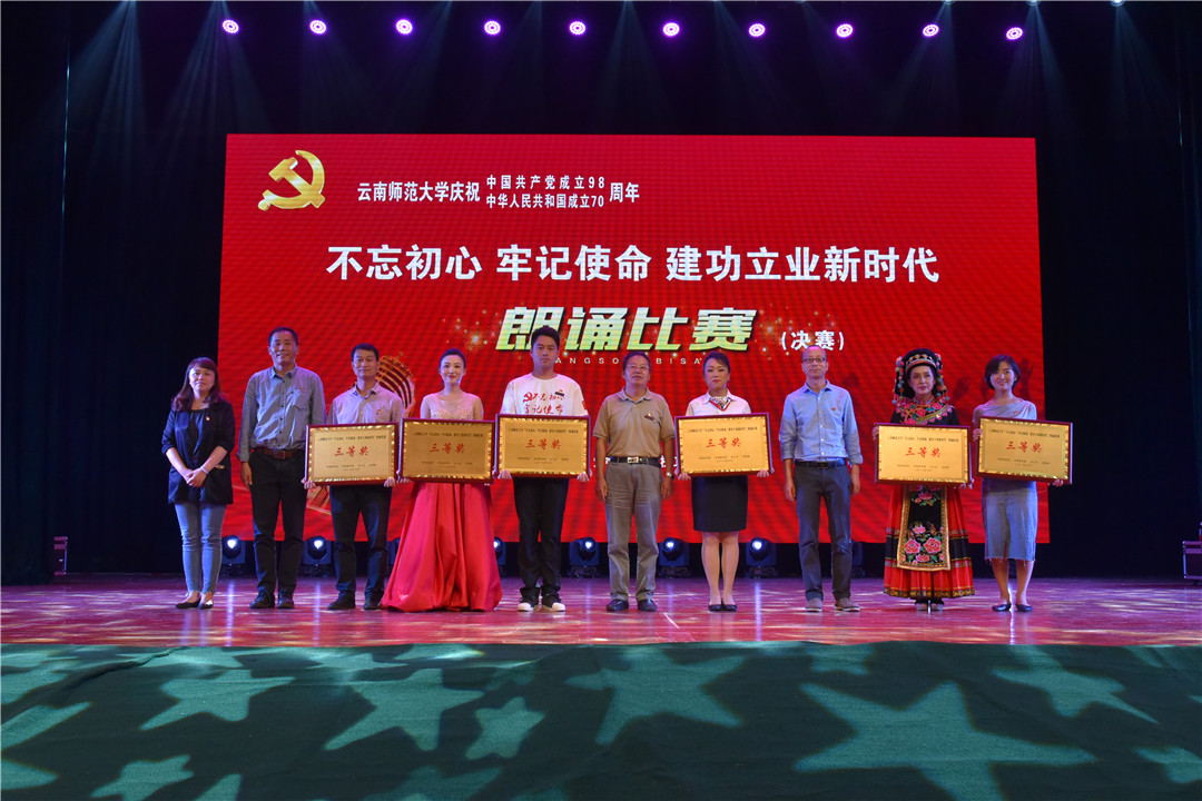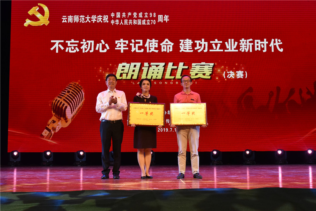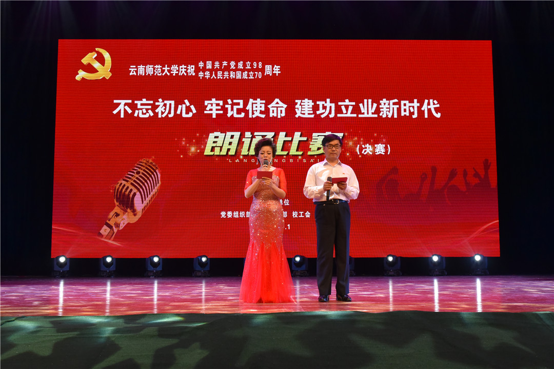 为深入学习贯彻习近平新时代中国特色社会主义思想和党的十九大精神,在中国共产党成立98周年和中华人民共和国成立70周年之际,7月1日下午,德赢官网Vwin“不忘初心、牢记使命,建功立业新时代”朗诵比赛决赛在呈贡主校区明德楼演播厅举办。