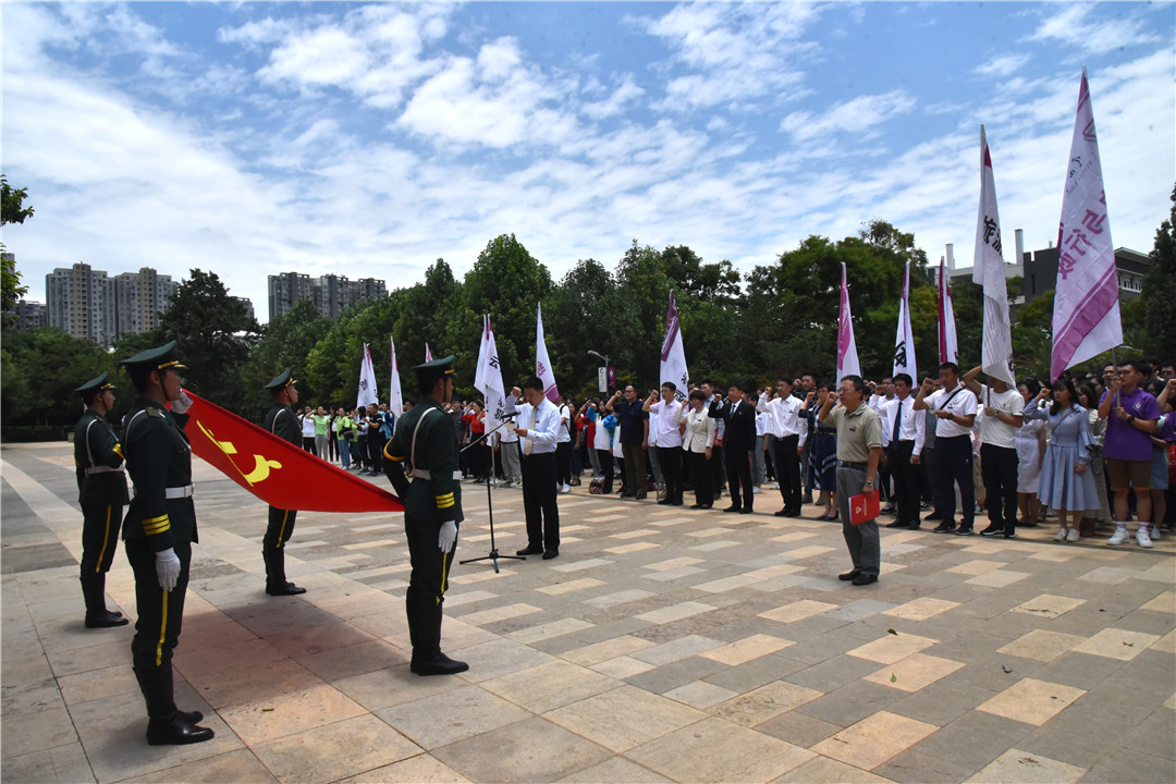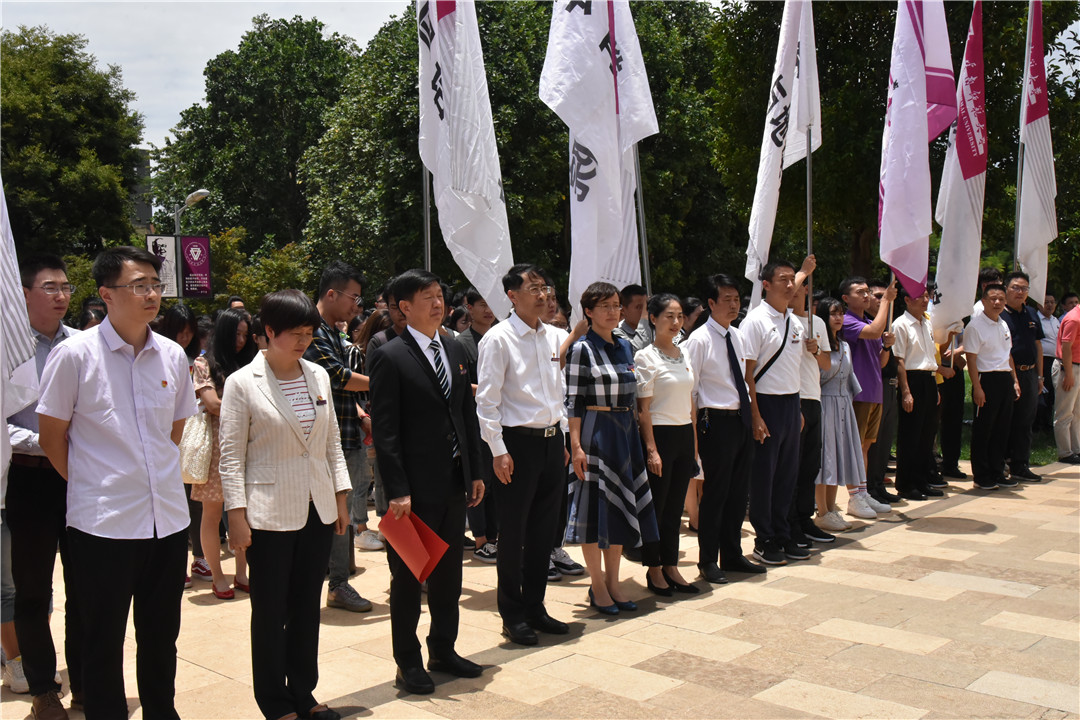 7月1日下午,德赢官网在呈贡主校区红烛广场举行了“不忘初心、牢记使命”入党宣誓仪式。校党委书记饶卫同志、校党委副书记张玮同志,党委办公室、党委组织部、党委宣传部、党委统战部、学生工作部、研究生工作部、机关党委、校团委等部门主要负责人,呈贡主校区各学院党委(党总支)负责人、带队教师和2019年新入党的师生党员代表共300余人参加。入党宣誓仪式由党委组织部部长蔡金红同志主持。