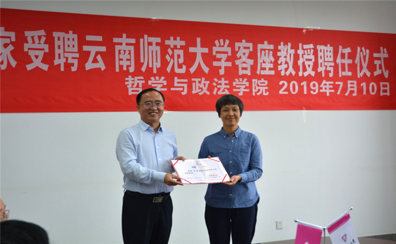 会议分两个阶段进行。第一阶段举行北京大学社会学系专家受聘德赢官网Vwin客座教授聘任仪式,哲学与政法学院党委书记王丽萍主持仪式。王丽萍书记首先介绍了参加此次受聘仪式的北京大学张静等五位教授,并对五位教授的到来表示欢迎。哲学与政法学院院长毕天云教授代表学院发言,对北京大学社会学系的五位受聘教授表示衷心感谢,并表示哲学与政法学院将在北京大学社会学系的支持下,用心学习、尽心做事,争取在学科建设和项目合作上取得突破。北京大学社会学系主任张静教授在讲话中表示,西南联大社会学历史悠久,底蕴深厚,北京大学社会学系和德赢官网Vwin哲学与政法学院将本着学术为本、互利可行的原则积极开展合作,将在云南少数民族地区建立教学科研实践基地,为合作开展奠定基础。校长蒋永文教授为五位受聘专家颁发受聘证书,并提出了三点希望:一是希望制定长久的合作机制,为合作打好基础;二是精心制定合作方案,切实开展有效合作;三是加强沟通,在合作中做好服务保障工作。