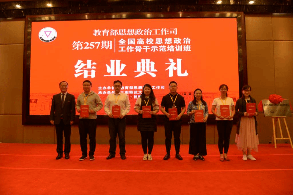 2019年7月7日至10日,由教育部思政司主办、教育部高校思想政治工作队伍培训研修中心(德赢官网Vwin)承办的第257期全国高校思想政治工作骨干示范培训班在德赢官网Vwin呈贡主校区国际交流中心举行。云南省委高校工委大学生工作部侯炳霞部长,德赢官网Vwin党委书记饶卫,校长蒋永文,党委副书记张玮、李宏,学校党委办公室、校长办公室、组织部、宣传部、研究生部、学生工作部主要负责人出席了开班仪式和结业典礼。