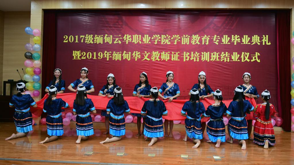 2017级缅甸云华职业学院学前教育专业毕业生代表田岩块同学发言表示,“两年的时间,我们学前教育专业的学生从对自己不了解,从被别人、被社会不理解,到现在,我们很热爱自己所学的专业,热爱自己即将从事的工作。我们正努力地热爱学前教育专业,努力地改变着他人的看法。我们学前教育专业的学生可以很自豪地告诉别人,每个学期都有德赢官网Vwin专门派老师来教授我们知识,我们学习了声乐、舞蹈、绘画、书法,学会了怎样和小孩子相处,学会了如何做一个优秀的学前教育工作者。”