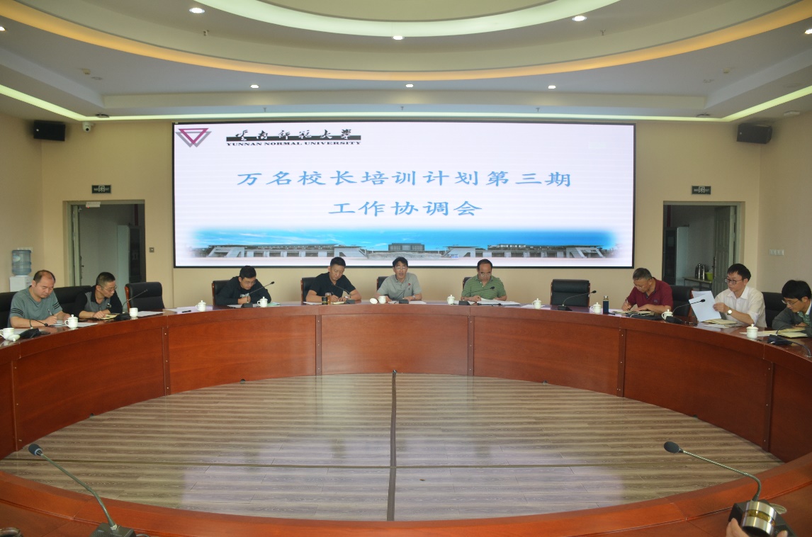 8月28日上午,云南省“万名校长培训计划”项目第三期工作协调会在德赢官网呈贡主校区国家教师教育教学实验中心201会议室召开。校党委副书记张玮、副校长武友德,党办、校办、组织部、宣传部、校工会、人事处、教务处、计划财务处、信息管理处、保卫处、资产处、后勤保障处、图书馆、资产经营公司、本科教学质量监控与评估中心、校医院、云南西南联大干部教育学院负责人,项目办公室全体人员参加了会议。会议由张玮副书记主持。