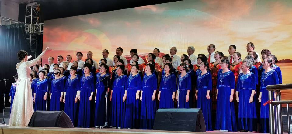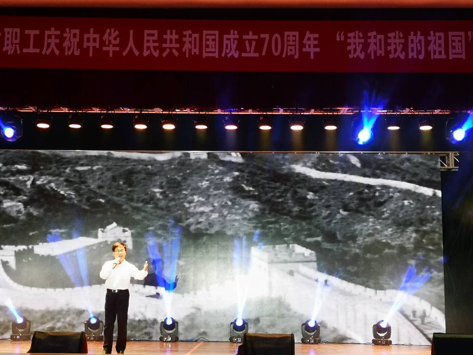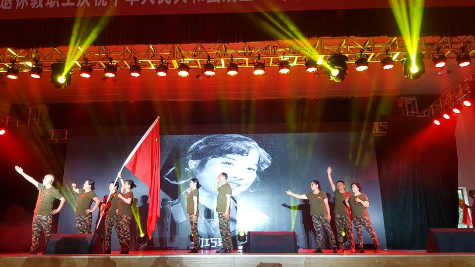 文艺演出在一曲悠扬的《我和我的祖国》中拉开帷幕。大合唱《南湖的船》,唱出了南湖游船的伟大历史意义;周林老师激情朗诵《可爱的中国》,演绎出当年狱中方志敏同志对祖国的殷殷期待,美好祈盼;由何巧玲和马新武老师送上的《今天是你的生日》,以饱满的情感祝愿祖国繁荣昌盛;犹如珠落玉盘的民乐合奏《毛主席的话儿记心上》,道出了全国人民“听党话,跟党走”过上幸福生活的心声;风采依旧的退伍军人为大家献上的军旅歌曲《我是一个兵》,展现了军人的飒爽英姿和报国热情;舞蹈《祖国在我心上》道出了对祖国山山水水、田野江河的深爱无边;情景歌剧表演《看天下劳苦大众都解放》诠释了共产党人“不忘初心、牢记使命”的责任担当。文艺演出在大型舞蹈《爱我中华》中圆满落下帷幕。