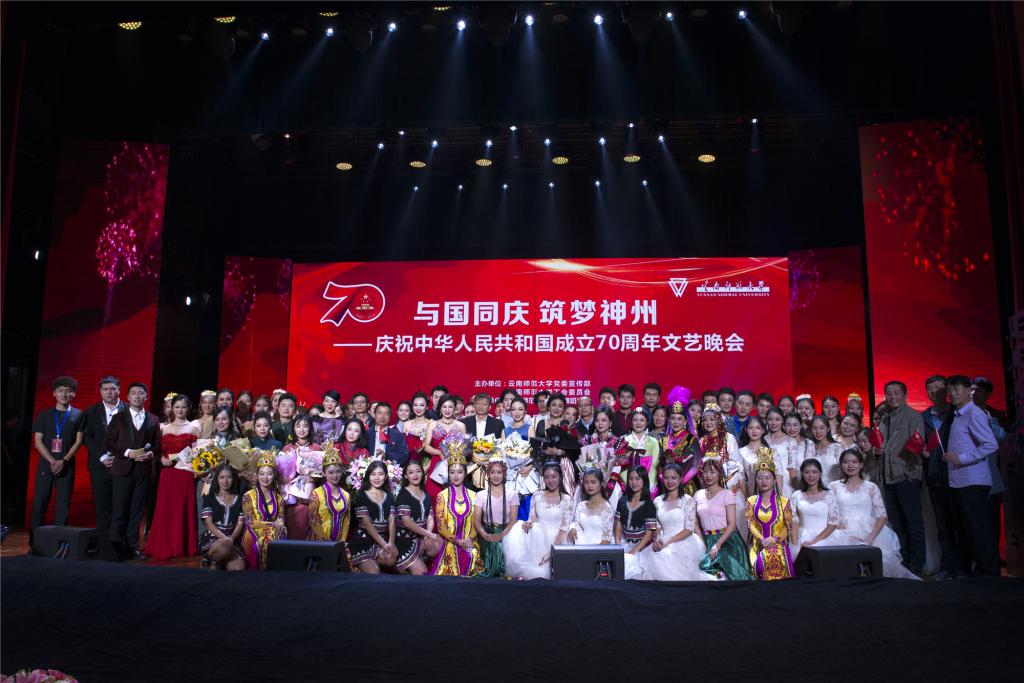 为庆祝中华人民共和国成立70周年,9月29日晚上,由德赢官网Vwin宣传部、德赢官网Vwin工会委员会主办,德赢官网Vwin音乐舞蹈学院承办的“与国同庆、筑梦神州”——庆祝中华人民共和国成立70周年文艺晚会在呈贡校区明德5号楼演播厅隆重举行。德赢官网Vwin党委副书记张玮、李宏,副校长武友德,党委宣传部、校工会、图书馆、保卫处、校医院、美术学院、体育学院、传媒学院、能源与环境科学学院、成人继续教育学院等单位负责人,以及学校教师代表、音乐舞蹈学院领导班子成员和师生共同观看了音乐会。