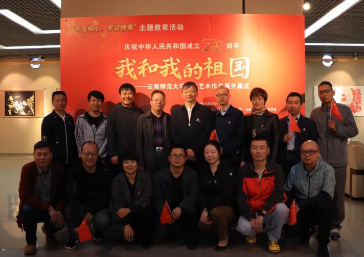 2019年9月26日上午,美术学院与学校党委宣传部联合举办“不忘初心、牢记使命”主题教育“我和我的祖国——庆祝新中国成立七十周年剪纸作品展”。校党委李宏副书记出席开幕式,宣布展览开幕。校党委组织部部长蔡金红、宣传部长余冰释,校团委、研究生部、学生工作处、就业处、音乐舞蹈学院、旅游与地理科学学院等单位负责人,美术学院客座教授、非遗传承人樊涌,美术学院领导班子成员、师生代表共200余人参加了此次活动。开幕式由美术学院党委书记张健主持,美术学院院长戴杰致辞,在精心编排快闪《我和我的祖国》歌声中拉开序幕。
