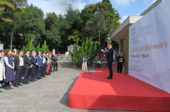 朱光磊教授致开幕辞。他指出,西南联大是南开大学非常重要的一段历史记忆,在南开大学建校100周年之际,走进西南联大遗址,举办“纪念南开大学建校100周年暨西南联大往事专题画展”,将南开大学在西南联大时期的历史人物和历史事件,以及西南联大在昆期间发生的重要事件,以油画形式进行再现,非常有意义。他代表南开大学感谢云南人民对南开大学的接纳和帮助,期望共同将这一段历史传承好,增进南开大学与云南师大的合作交流。