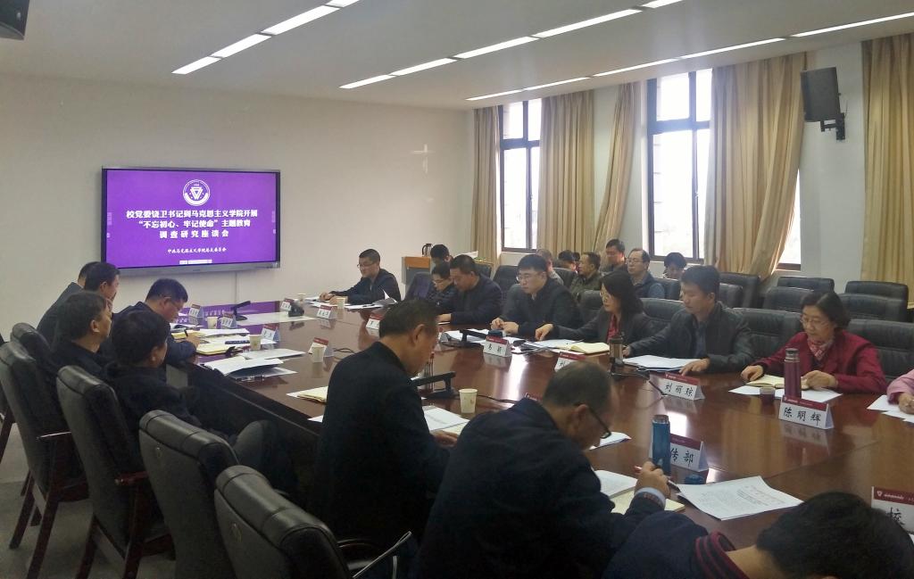 10月15日上午,校党委书记饶卫到马克思主义学院开展“不忘初心、牢记使命”主题教育调查研究工作并召开座谈会。校党委副书记李宏、副校长安学斌以及党委办公室、校长办公室、党委组织部、党委宣传部、教务处、人事处等部门主要负责人,马克思主义学院“不忘初心、牢记使命”主题教育全体成员和师生党员代表参加调研座谈会。