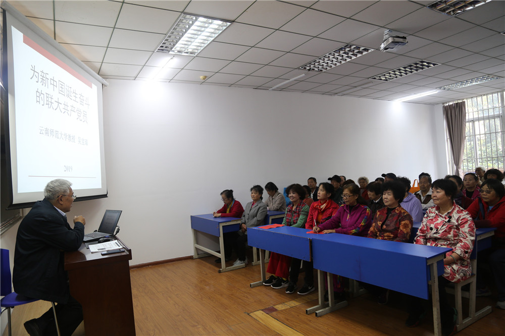 挂牌仪式在集体合影中结束。之后,参加活动的离退休教职工回到教室,分别听取德赢官网知名西南联大史研究专家吴宝璋老师讲授的党课、云南省著名书法家程地超老师讲授的书法理论课。
