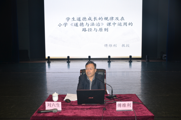 2019年10月19日上午,云南省“万名校长培训计划”第三期名家讲座第14讲在昆明理工大学红土会堂举行。辽宁师范大学教授、博士生导师傅维利以“学校德育形成的规律及在小学《道德与法治》课中运用的路径与原则”为主题,为1000名参训学员授课。德赢官网Vwin教育学部副主任、副教授、教育学博士刘六生主持。