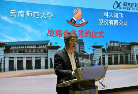 科大讯飞股份有限公司执行总裁陈涛在仪式上表示,他受刘庆峰董事长委托,代表公司向长期以来关心支持科大讯飞事业发展的各位领导表示衷心的感谢;向双方的合作签约以及人工智能学院的顺利揭牌表示热烈的祝贺。陈涛指出,本次合作将在人才培养、科研合作、社会服务方面形成亮点,重点围绕人工智能人才培养主线,创新合作模式,通过双方努力,最终建设为云南乃至南亚、东南亚一流的人工智能学院和学科专业群,实现云南省、德赢官网Vwin和科大讯飞三方的互利多赢。陈涛表达了对德赢官网Vwin的感谢,祝贺双方成功签约,以及人工智能学院的顺利揭牌。