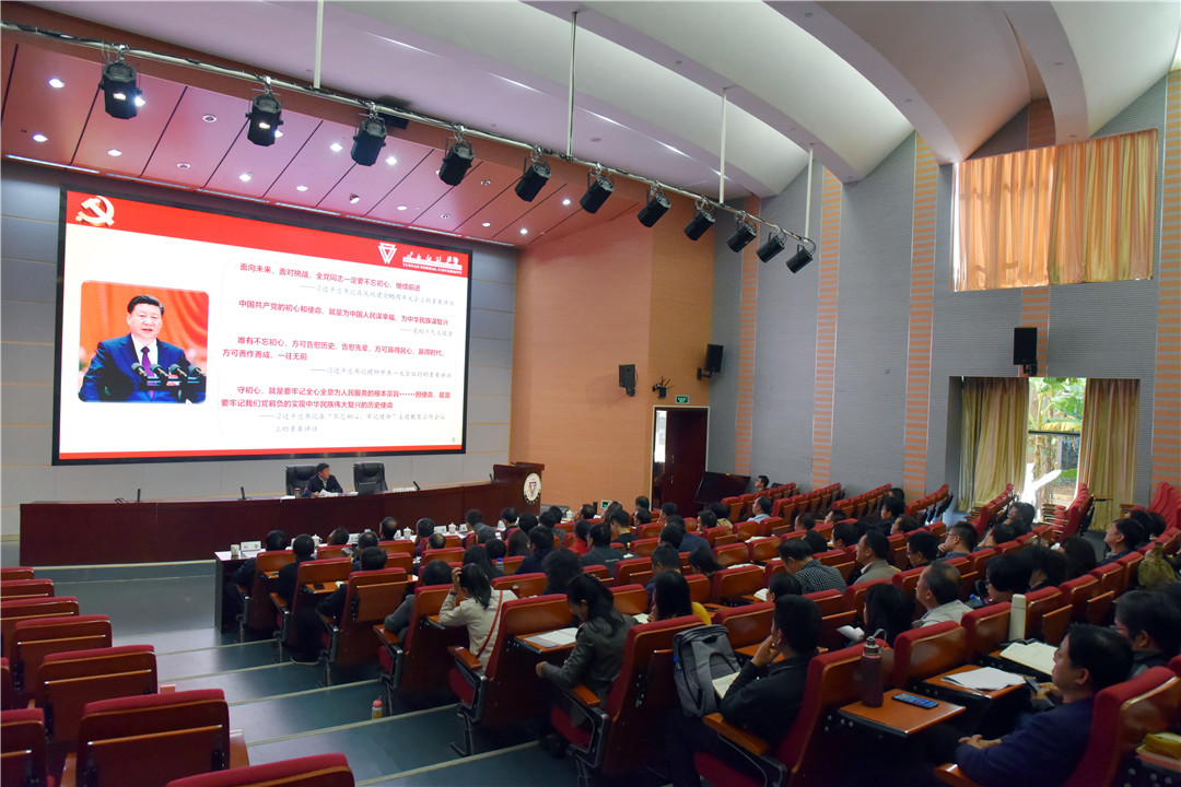 饶卫书记结合主题教育开展以来自己的调研和思考,从深入学习贯彻习近平总书记关于“不忘初心、牢记使命”的系列重要论述,在学深悟透中激发奋进力量;分析学校党的建设取得的成效和存在的突出问题,深刻认识推进全面从严治党向纵深发展的重要性和紧迫性;深入贯彻新时代党的建设总要求,加强党对学校工作的全面领导,使学校成为坚持党的领导的坚强阵地等三个方面展开讲授。
