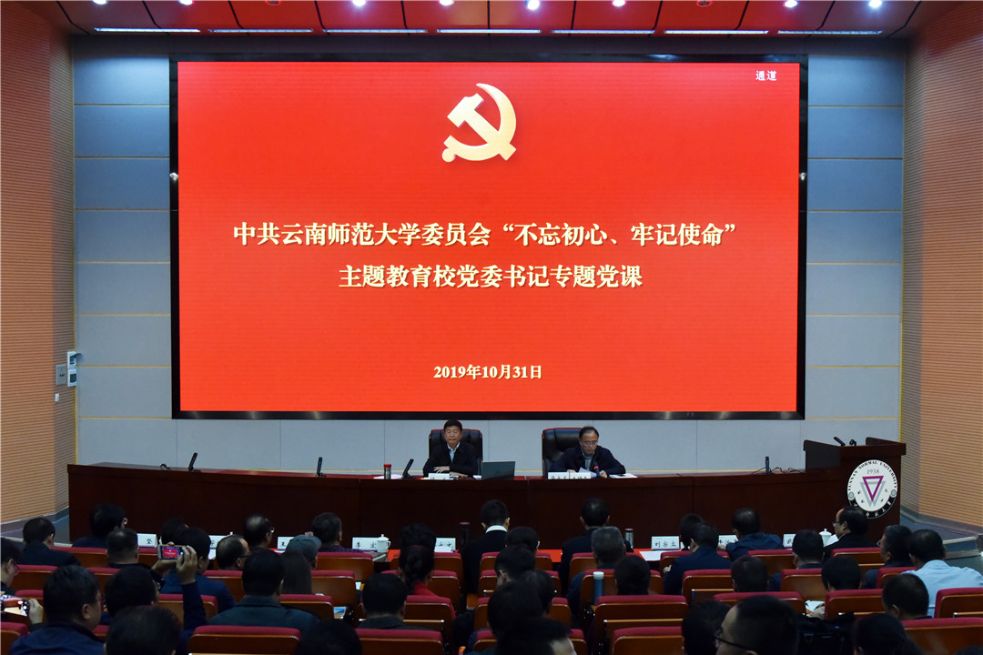 为认真贯彻落实中央、省委关于主题教育部署要求,不断深化对习近平新时代中国特色社会主义思想的理解,提高运用党的创新理论指导实践、推动工作的能力,按照《德赢官网Vwin党委领导班子开展“不忘初心、牢记使命”主题教育实施方案》安排,10月31日下午,校党委书记饶卫在呈贡主校区西边中心报告厅作了题为“坚守初心使命 勇于担当实干 以一流党建引领一流师范大学建设”的专题党课。