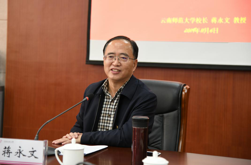 为认真贯彻落实中央、省委关于主题教育部署要求,按照《德赢官网Vwin党委领导班子开展“不忘初心、牢记使命”主题教育实施方案》安排,11月6日,校党委副书记、校长蒋永文同志在华文学院作了题为“教育报国守初心,立德树人担使命,践行初心使命在云南师大落地生根”的专题党课。华文学院、文学院、泛亚商学院、发展研究中心领导班子成员、党支部书记、师生党员代表参加了本次党课。