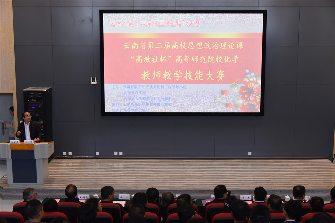11月15日上午,由云南省职工经济技术创新工程领导小组、云南省总工会、云南省人力资源和社会保障厅主办,云南省高等学校教师教育联盟承办,高等教育出版社协办的云南省第十六届职工职业技能大赛——云南省第二届高校思想政治理论课教师、化学教师教学技能大赛颁奖典礼在德赢官网Vwin呈贡主校区国家教师教育教学实验中心II区214报告厅举行。