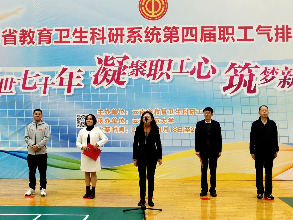 为全面贯彻落实习近平新时代中国特色社会主义思想和党的十九大精神,推进职工文化建设,不断满足广大职工对体育健身的要求,展现云南省教卫科系统广大职工奋发有为、锐意进取的精神,11月18日上午,云南省教卫科系统第四届职工气排球比赛在德赢官网Vwin呈贡主校区东区体育馆二楼排球馆拉开帷幕。