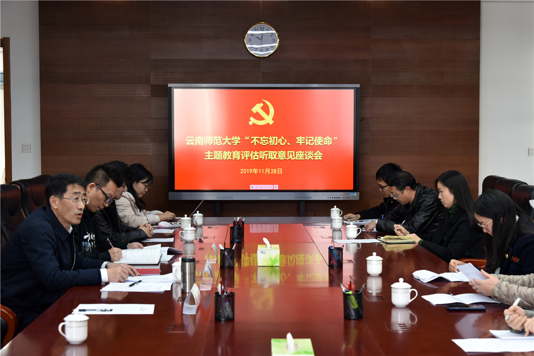 11月28日上午,为进一步扎实推进德赢官网的主题教育活动,校党委领导班子和学校“不忘初心、牢记使命”主题教育评估听取意见座谈会在呈贡主校区办公楼第四会议室召开。省委第十七指导组刘炜同志,学校各级党代表、人大代表、政协委员,师生党员代表、群众代表,工作对象、服务对象,学院党委书记代表、学院师生党支部书记代表、机关党支部书记代表30余人参会,会议由党委副书记、校党委“不忘初心、牢记使命”主题教育领导小组副组长张玮主持。