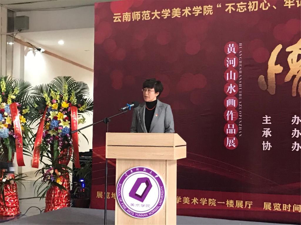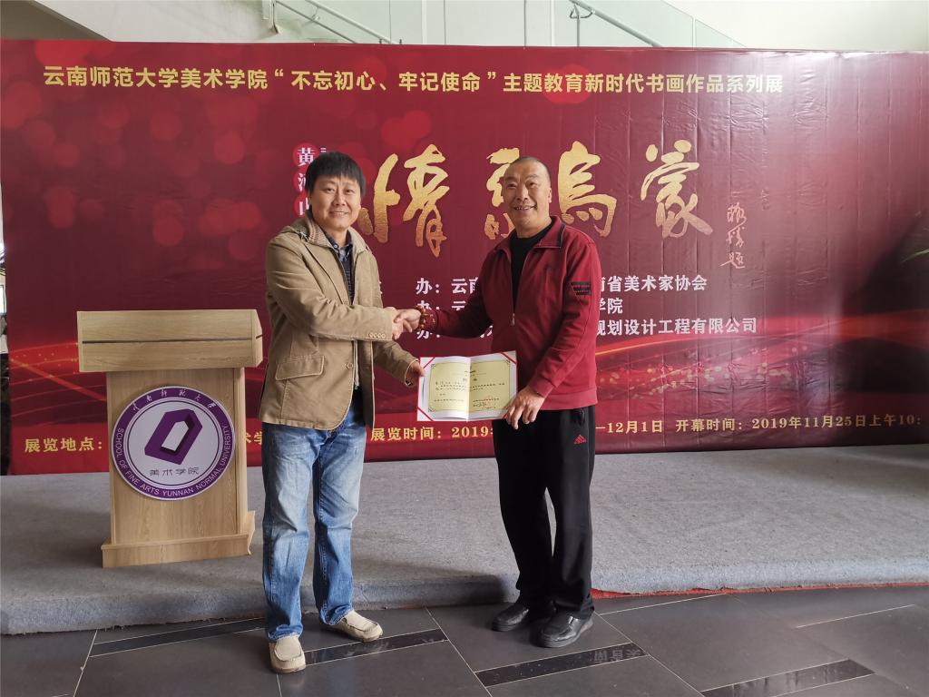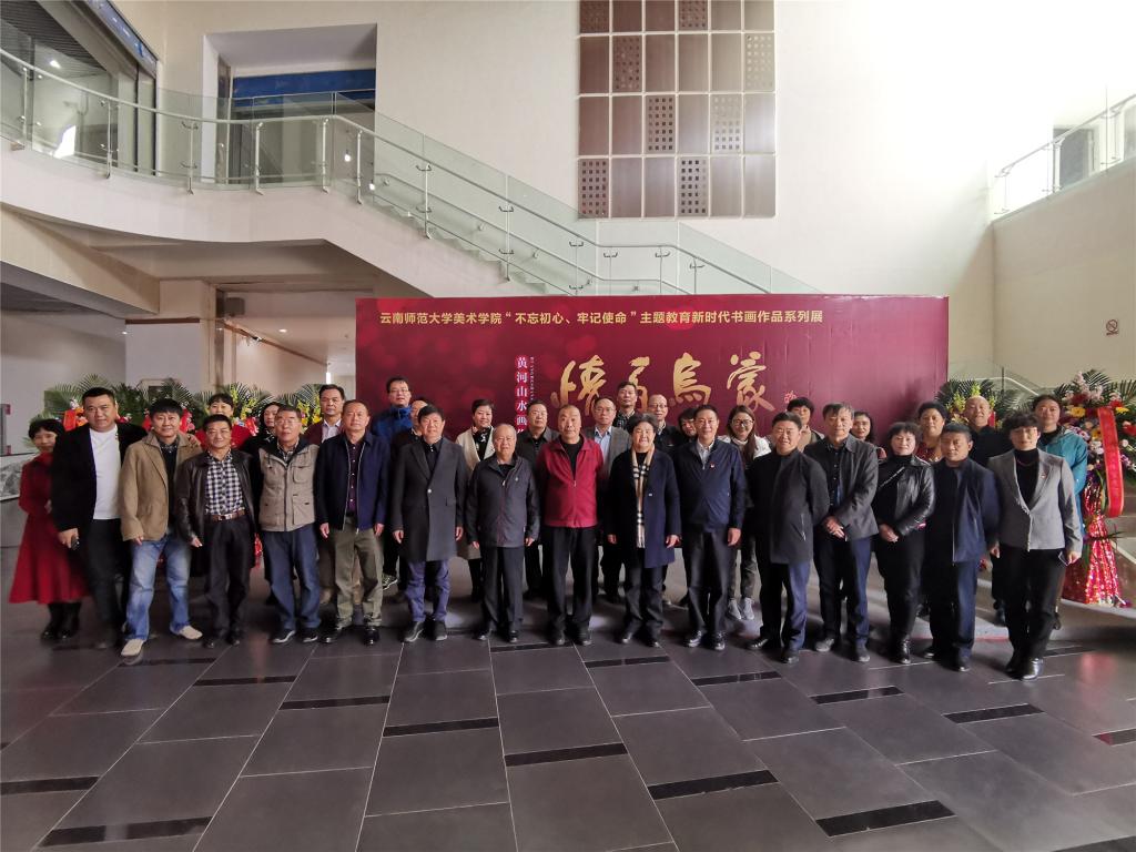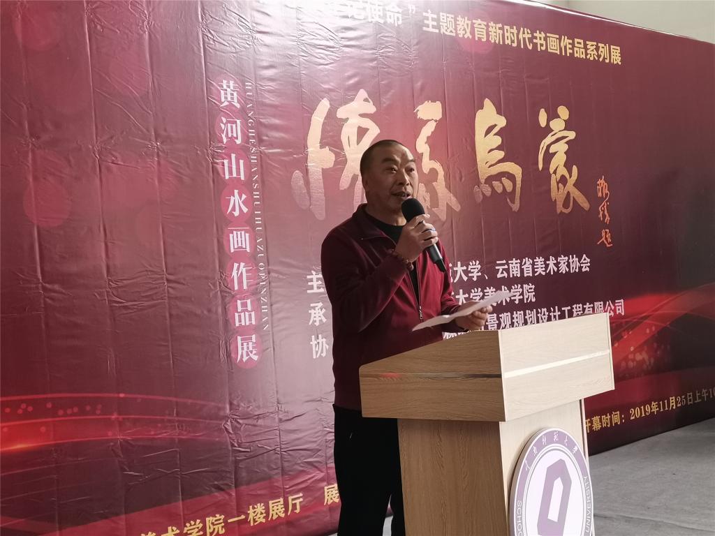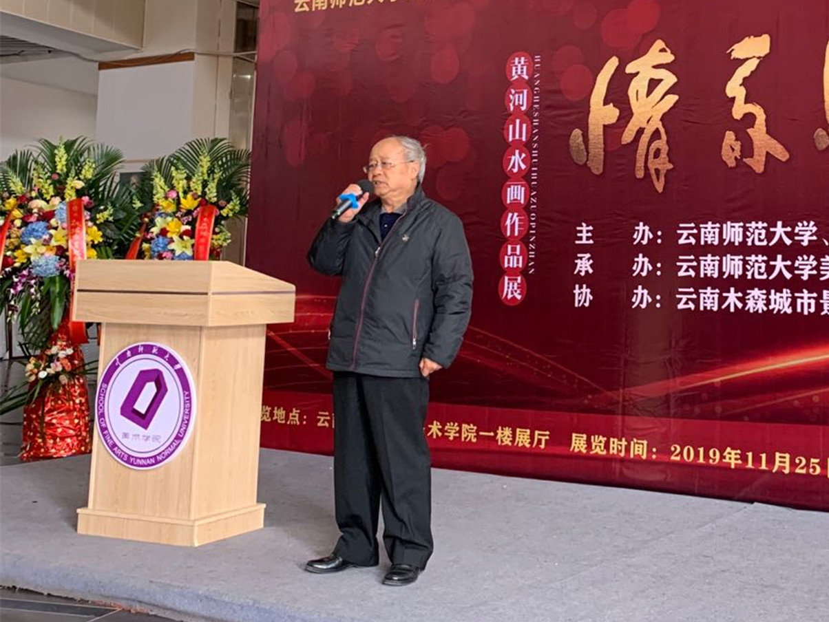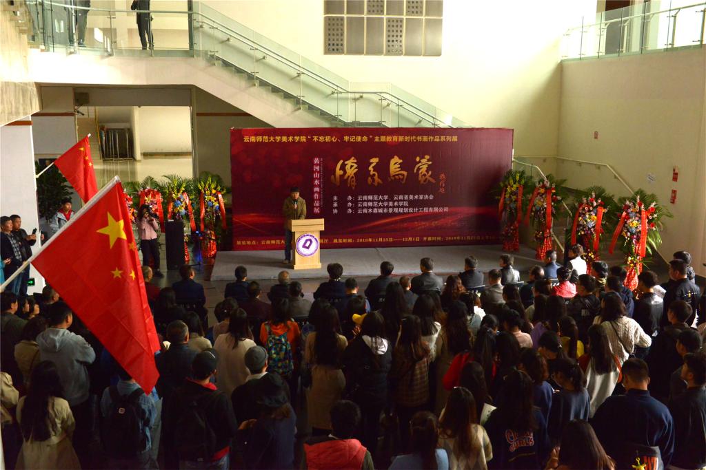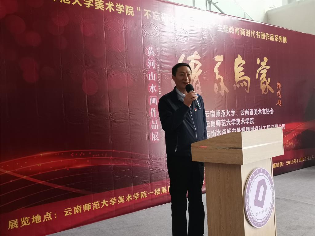 11月25日上午,由德赢官网Vwin、云南省美术家协会主办,德赢官网Vwin美术学院承办,云南木森城市景观规划设计工程有限公司协办的“不忘初心、牢记使命”主题教育新时代书画系列作品展首展——“情系乌蒙”黄河山水画作品展在美术学院一楼大厅开幕。本次展览的作品是中国美协会员、国家一级美术师、中国艺术创作院画家黄河先生多年积累的精品力作。