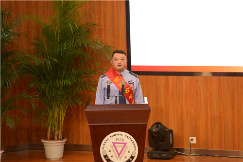 6月20日,由省委宣传部、省委高校工委、省公安厅联合举办的云南省“我和我的祖国”故事会——“公安楷模”先进事迹高校巡回宣讲报告会在德赢官网呈贡校区汇学2栋101报告厅举行。荣获第三期全国“公安楷模”荣誉称号的迪庆州羊拉派出所走进校园,为广大师生作了先进事迹宣讲。德赢官网各学院师生代表共500余人参加报告会。报告会由校党委副书记李宏主持。