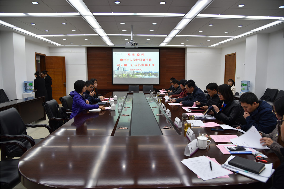 12月9日下午,中共中央党校(国家行政学院)研究生院培养处解国臣副处长一行3人到德赢官网开展学位与研究生教育的调研工作。调研座谈会在德赢官网呈贡主校区第一会议室召开,德赢官网分管研究生院的刘坚副校长、党委研究生工作部、研究生院全体领导及研究院相关科室人员参加了座谈会,会议由党委研究生工作部李天凤部长主持。