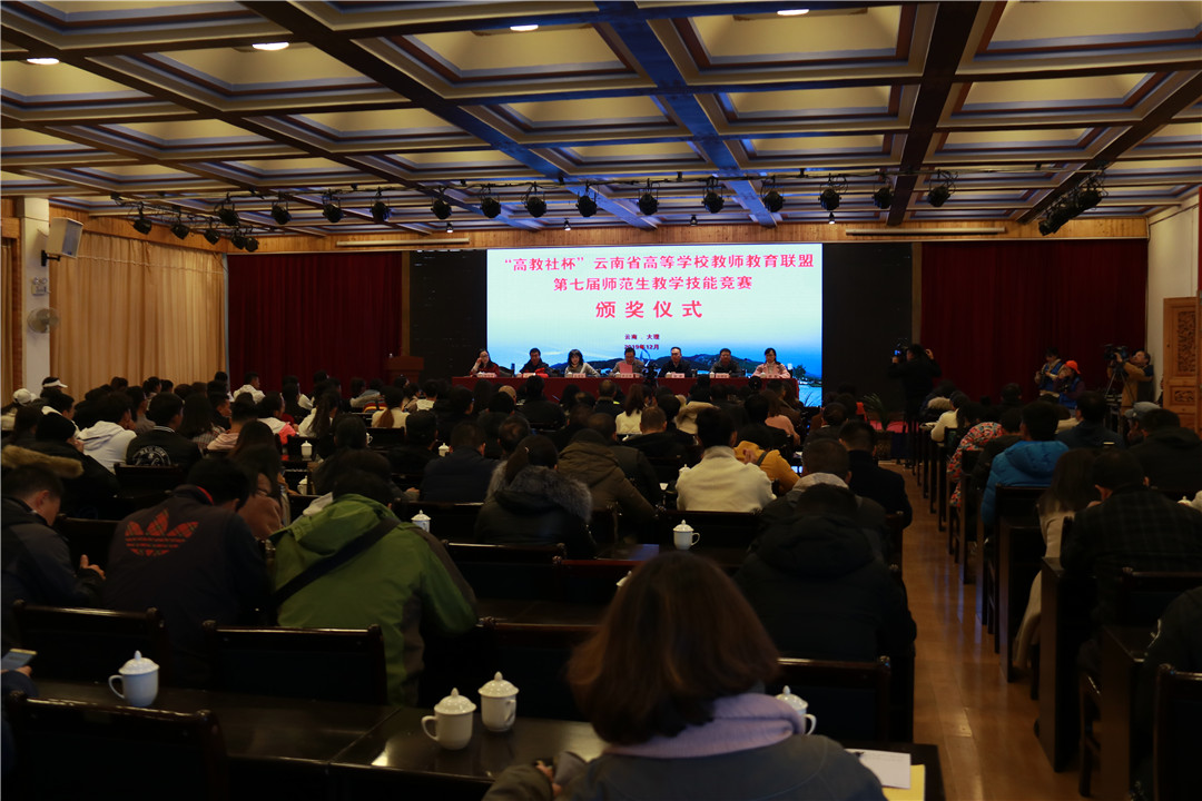 12月5日至6日,“高教社杯”云南省高等学校教师教育联盟第七届师范专业大学生教学技能竞赛(以下简称“竞赛”)决赛在大理大学成功举办,本次竞赛学科为音乐、体育、美术。云南省高等学校教师教育联盟(以下简称“联盟”)14所高校经过初赛共推选了127名优秀选手参加决赛。决赛分本科中学组、专科小学组两个大组共13个小组,分别在大理下关一中、大理四中和大理一小进行实时课堂教学技能竞赛。决赛评委由各联盟高校推荐的学科专家、基础教育一线教学专家(含协办中小学的一线教师)组成。经过紧张激烈的角逐,最终评选出一等奖21名,二等奖45名,三等奖61名,10所高校获得优秀组织奖。
