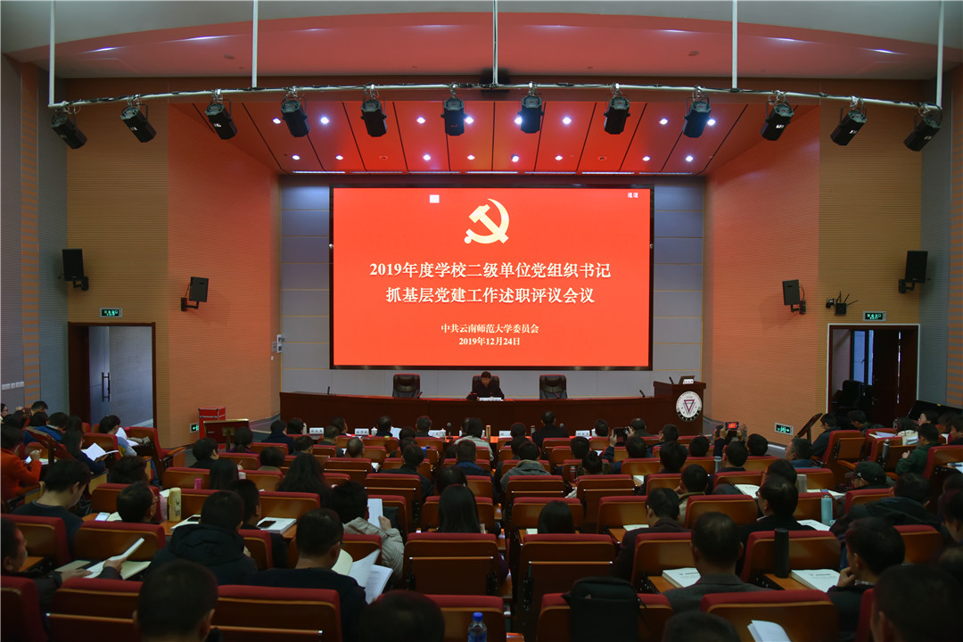 为深入学习贯彻习近平新时代中国特色社会主义思想和党的十九大精神,根据省委组织部、省委教育工委的部署和要求,2019年12月24日,德赢官网党委召开2019年度二级单位党组织书记抓基层党建工作述职评议会议。校党委委员,相关职能部门主要负责人,各二级单位党组织书记、副书记,熟悉学校基层党建工作情况的党代会代表、人大代表、政协委员、党务干部、师生党员和群众代表等170余人参加了会议。会议由校党委书记饶卫同志主持。
