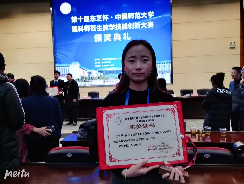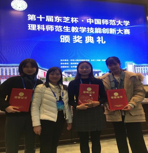 12月24-27日,第十届东芝杯全国师范院校理科师范生教学技能创新大赛决赛在贵州师范大学举行,本次比赛由教育部及东芝(中国)有限公司主办,贵州师范大学承办。全国50所高校共选送150名本科生(数学、物理,化学各50名)参加大赛,3个比赛学科组分别设一等奖1名、二等奖3名、三等奖6名。德赢官网数学学院李雪艳、物理与电子信息学院杨玉洁、化学化工学院赵欣旖三位同学代表学校参赛。