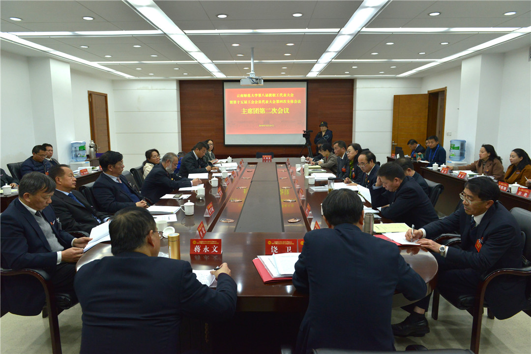 下午三点,大会主席团第二次会议在行政楼211会议室召开,会议由校党委书记饶卫主持。会议听取了各代表团团长汇报代表团讨论情况,审议了《德赢官网Vwin工会第十五届委员会增补委员候选人名单》(草案),通过了《大会选举办法》(草案),总监票人、监票人建议名单(草案),审议提出了大会决议(草案)。