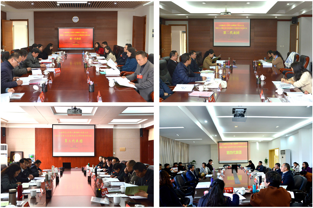 随后,与会代表分为8个代表团,分组讨论了《学校2019年度工作报告》《学校2019年度财务工作报告》《学校工会2019年度工作报告》《学校工会2019年度经费审查工作报告》《德赢官网Vwin本科学分制改革方案(试行)》(草案)《德赢官网Vwin岗位聘用制总则》(草案)以及《德赢官网Vwin工会第十五届委员会增补委员候选人建议名单》(草案)和《大会选举办法》(草案)。校领导分别深入各代表团参加了讨论。全体代表以主人翁精神,认真履行职责,就学校如何科学合理实施两个文件提出了许多宝贵意见和建议。