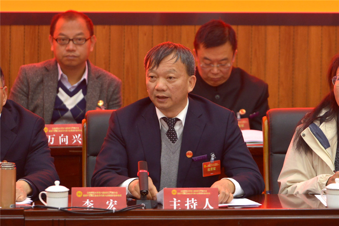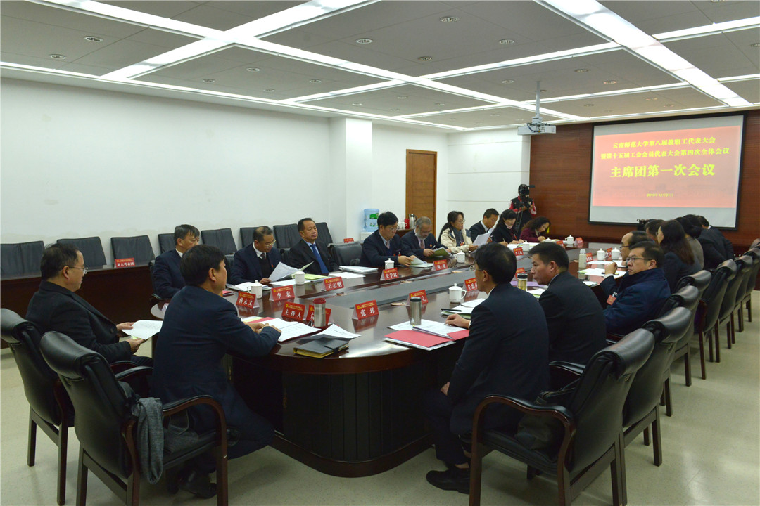 2019年12月31日,德赢官网Vwin第八届教职工代表大会暨第十五届工会会员代表大会第四次全体会议第一次全体代表大会在呈贡主校区汇学2幢101报告厅顺利召开。校党委书记饶卫,校长蒋永文,校党委副书记张玮、李宏,副校长刘宗立,纪委书记王志刚,副校长牛治亮、安学斌、武友德、刘坚、郝淑美等校领导,以及各学院、部门正式代表172人、列席代表41人、特邀代表5人共同参加此次会议。会议由校党委副书记张玮主持。
