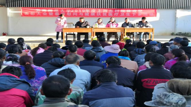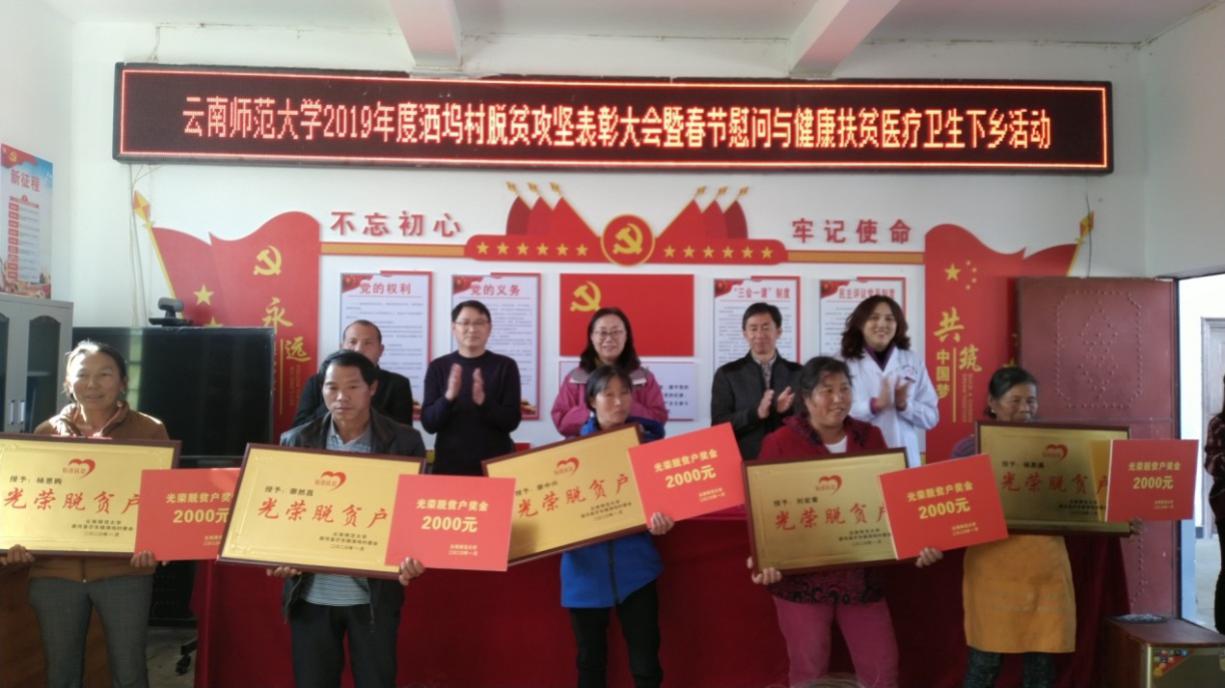 在新春佳节来临之际,为激发广大群众及建档立卡贫困户内生发展动力, 2020年1月6日至 7日,德赢官网Vwin分别在挂钩扶贫的梁河县洒坞村和上河东村召开了2019年度脱贫攻坚表彰大会。郝淑美副校长出席会议,对2019年度涌现出的脱贫攻坚优秀脱贫户进行表彰,并对洒坞村和上河东村的建档立卡户进行春节慰问。