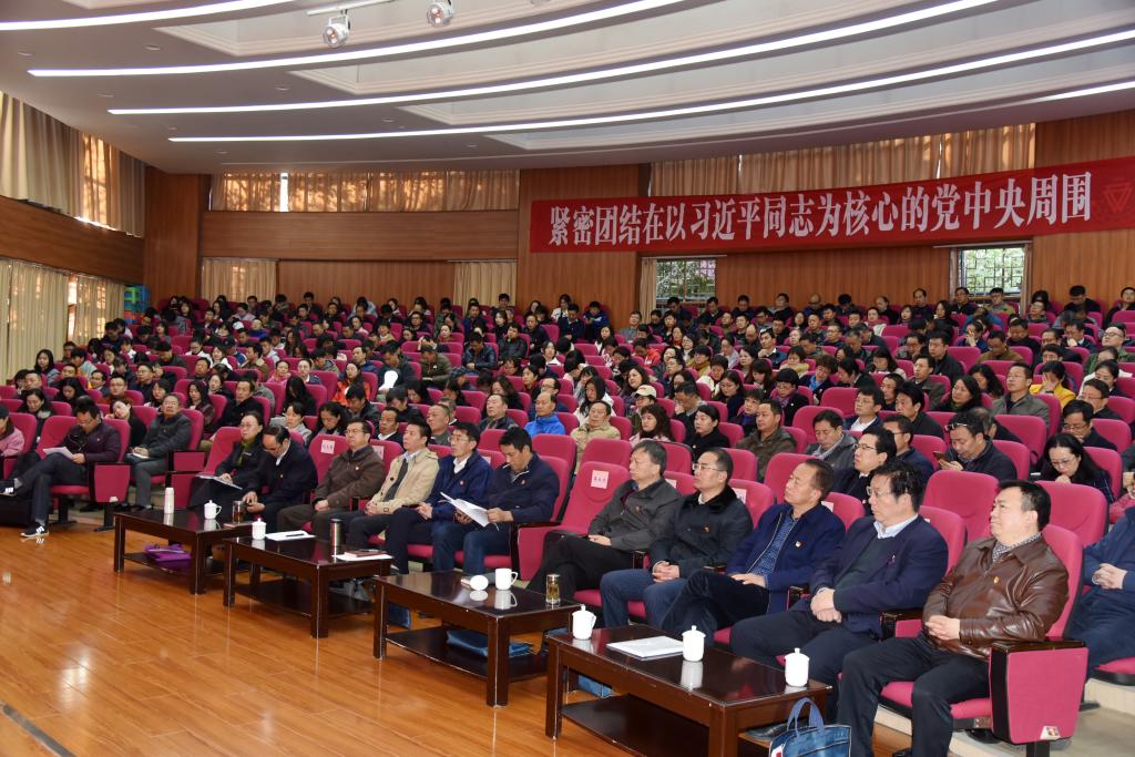 为学习贯彻中央、省委“不忘初心、牢记使命”主题教育总结大会精神,对全校主题教育开展情况进行总结,对巩固深化主题教育成果进行部署,以自我革命精神把全面从严治党推向深入,1月11日上午,德赢官网在汇学2栋101报告厅召开“不忘初心、牢记使命”主题教育总结会议。省委第十七指导组组长黄立新、组员龙庆,全体校党委委员、其他省管干部,近三年退休校领导,校党委主题教育领导小组成员,全校副处级及以上干部(含非领导职务),校党委主题教育各指导组组长、副组长,校党委主题教育领导小组办公室副主任及下设各工作组负责人,党员代表共400余人出席会议。会议由校党委书记、校党委“不忘初心、牢记使命”主题教育领导小组组长饶卫主持。
